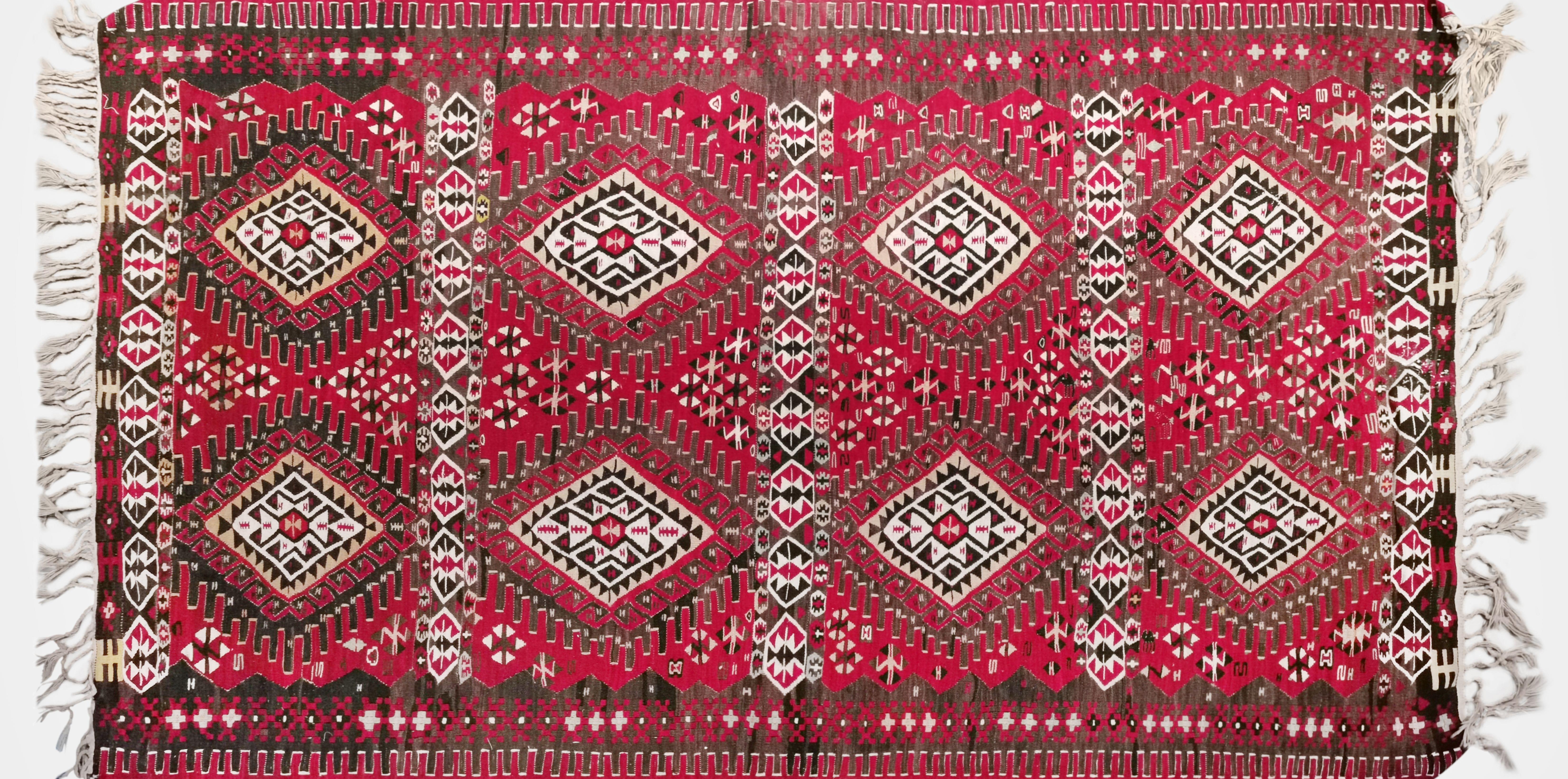 Laine rouge à décor géométrique, 334x164 cm. Provenance: collect...