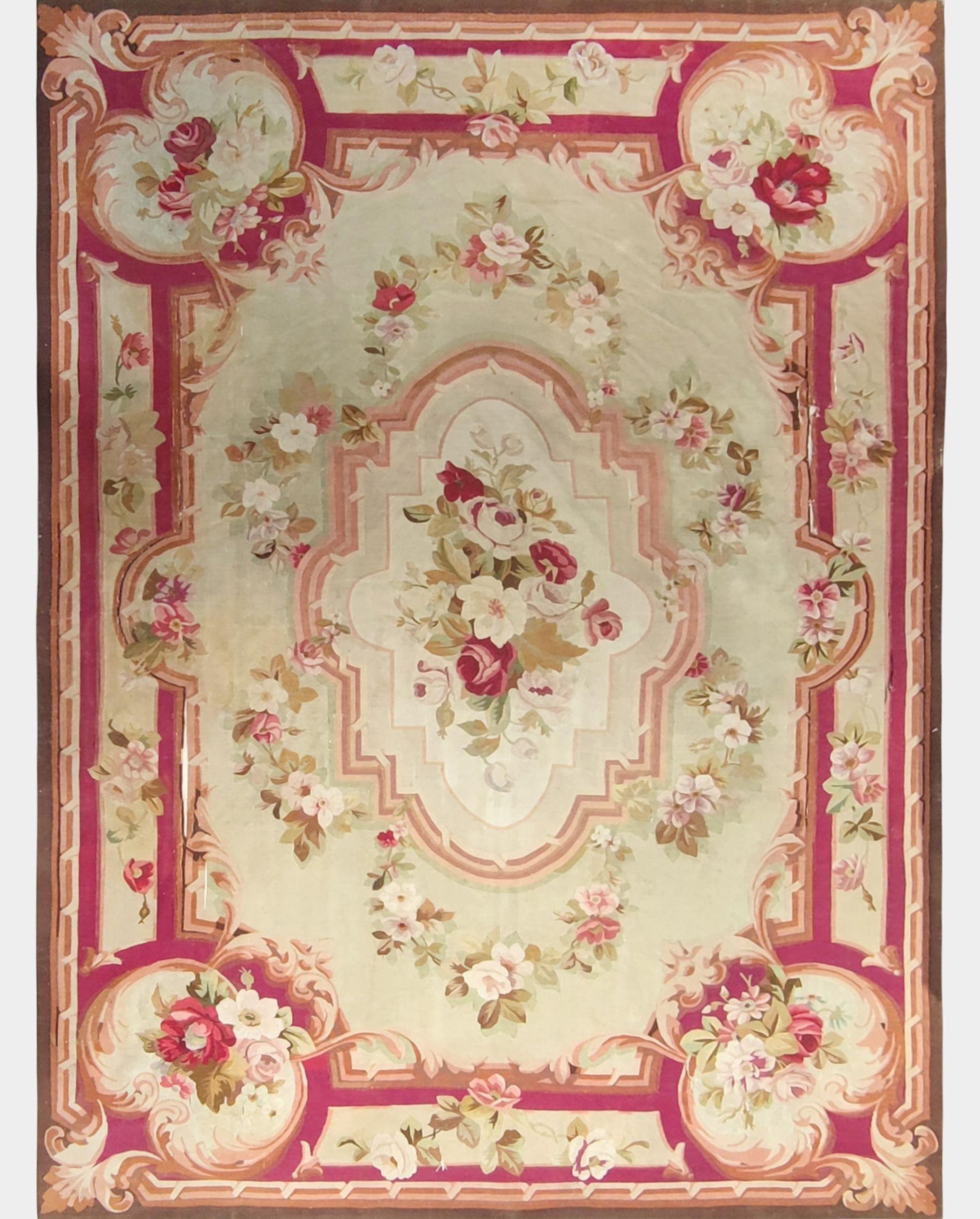 A motifs floraux et de rinceaux sur fond crème, 305x240 cm