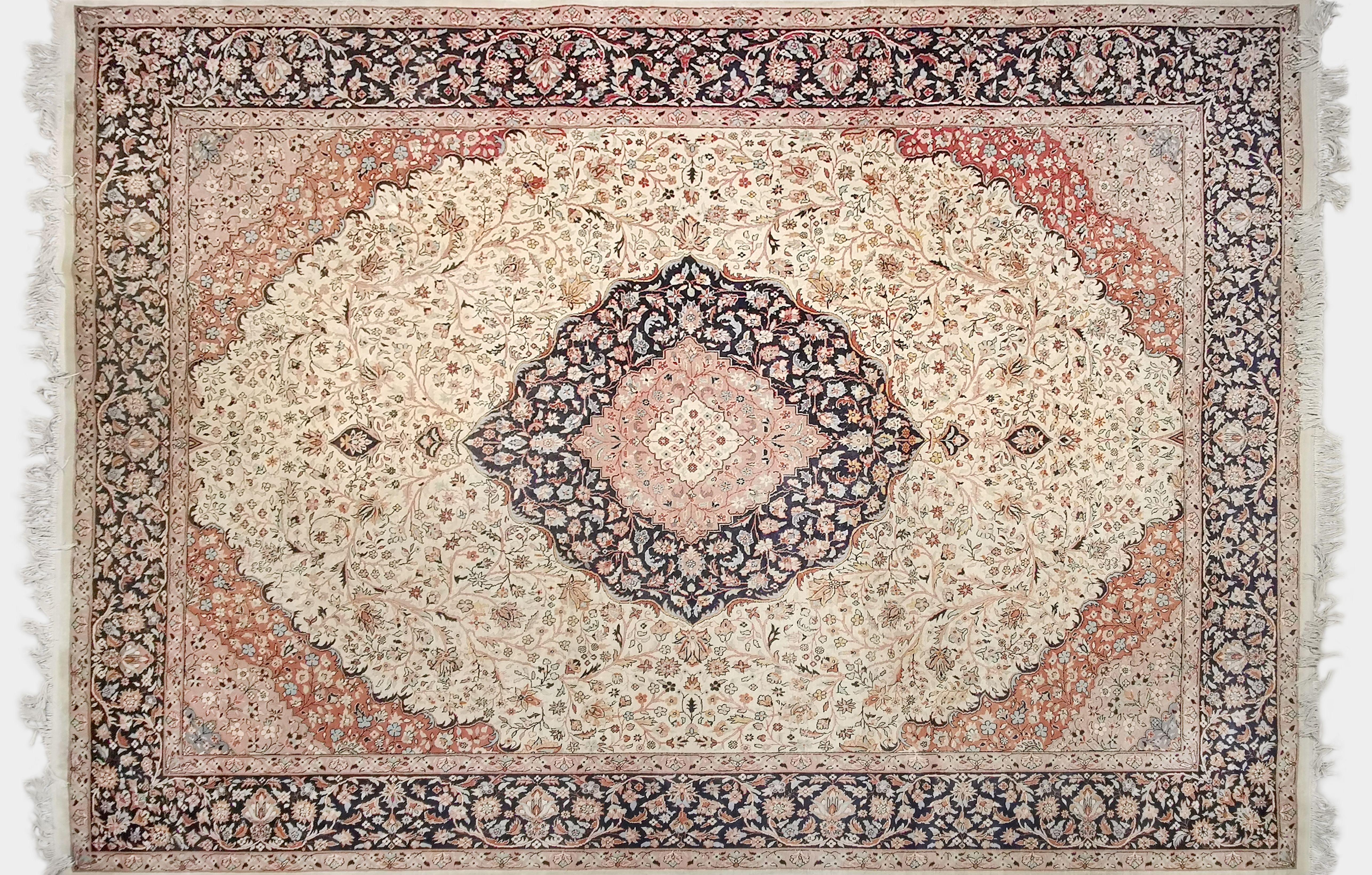 Laine et soie à décor d'un médaillon central, 360x280 cm