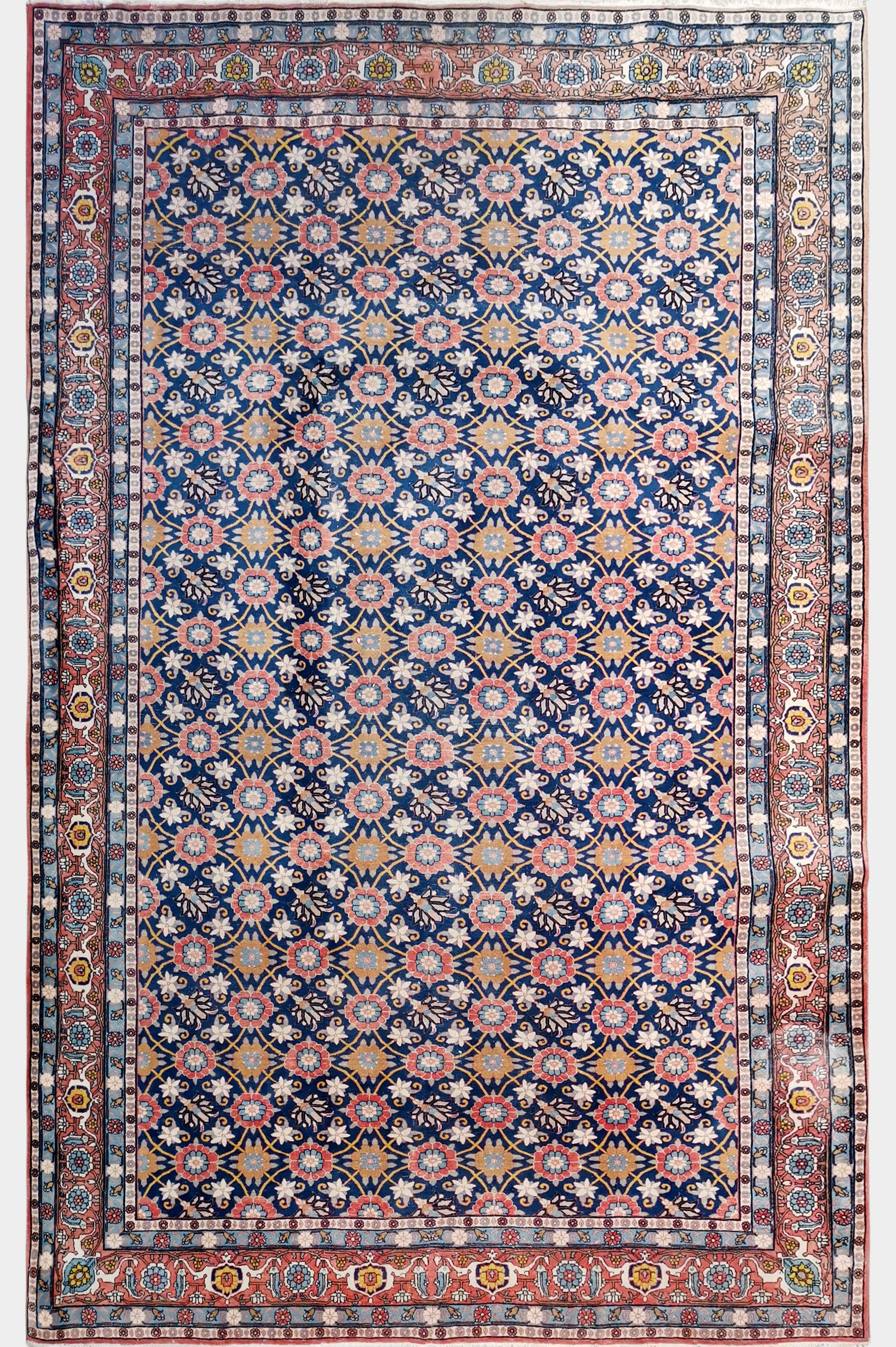 Laine à décor de fleurs sur fond bleu, bordures multiples, 300x200 cm
