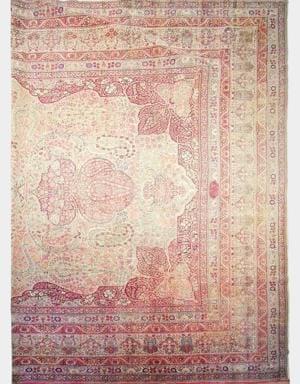 Laine et soie à décor de rinceaux et fleurs formant des botehs, bordure multiple 580x450 cm
