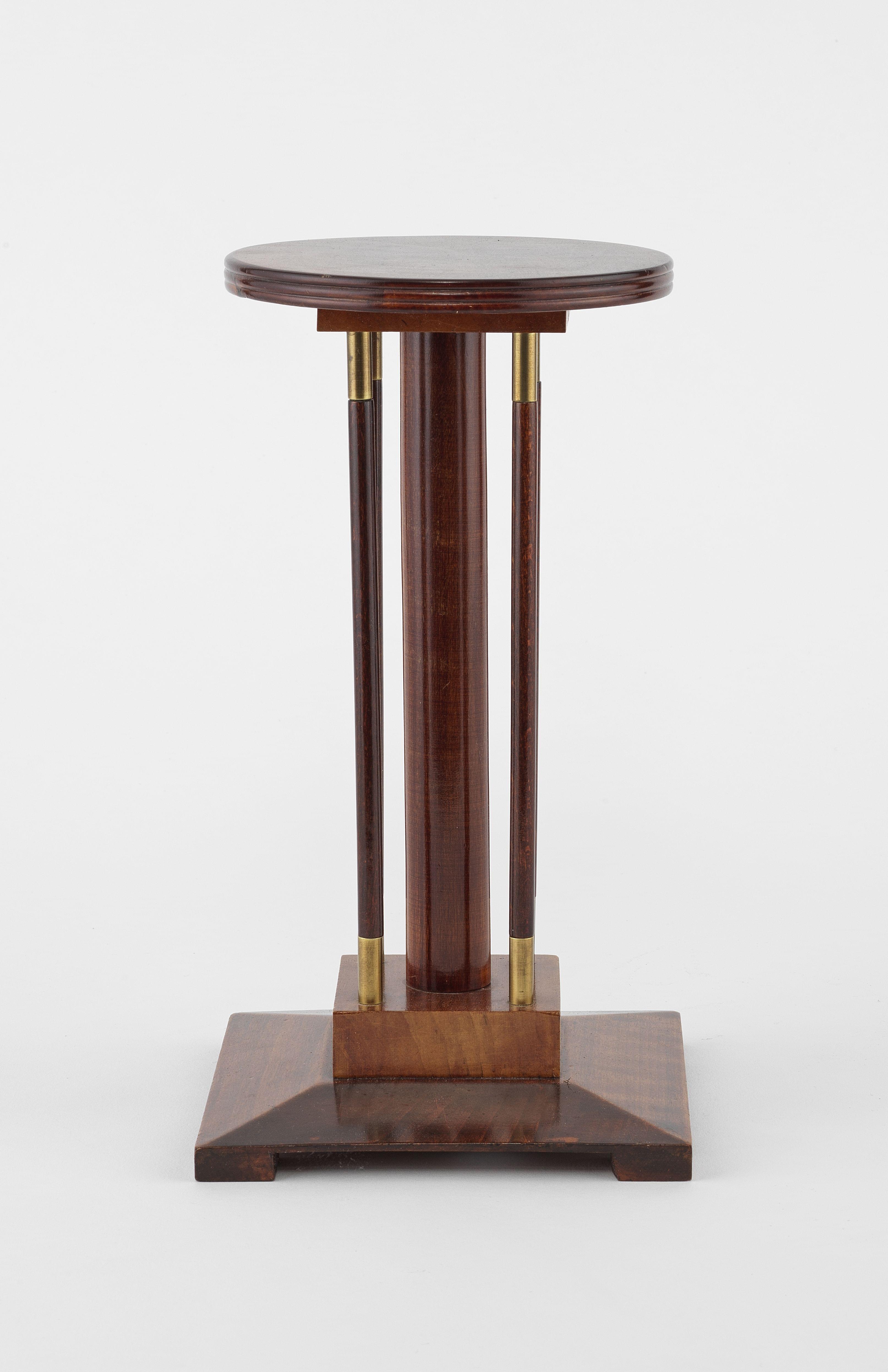 Trois tiroirs, bois au naturel et laiton, 57x60x32 cm