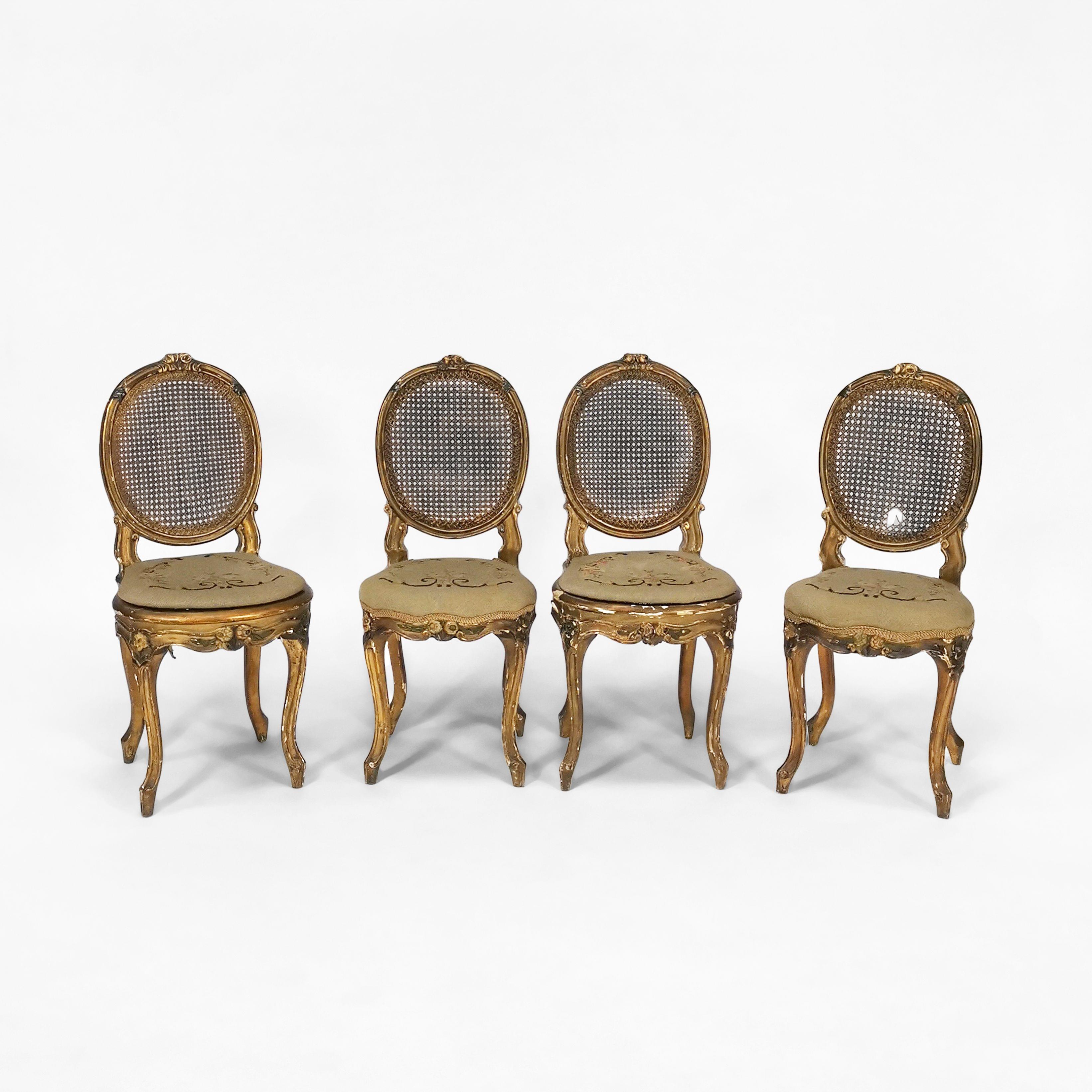 3709. Quatre chaises cannées de style Louis XV, XIXe s