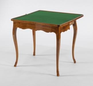 Plateau à décor marqueté de bois fruitier de cubes et trophée musical, 71x76x38 cm