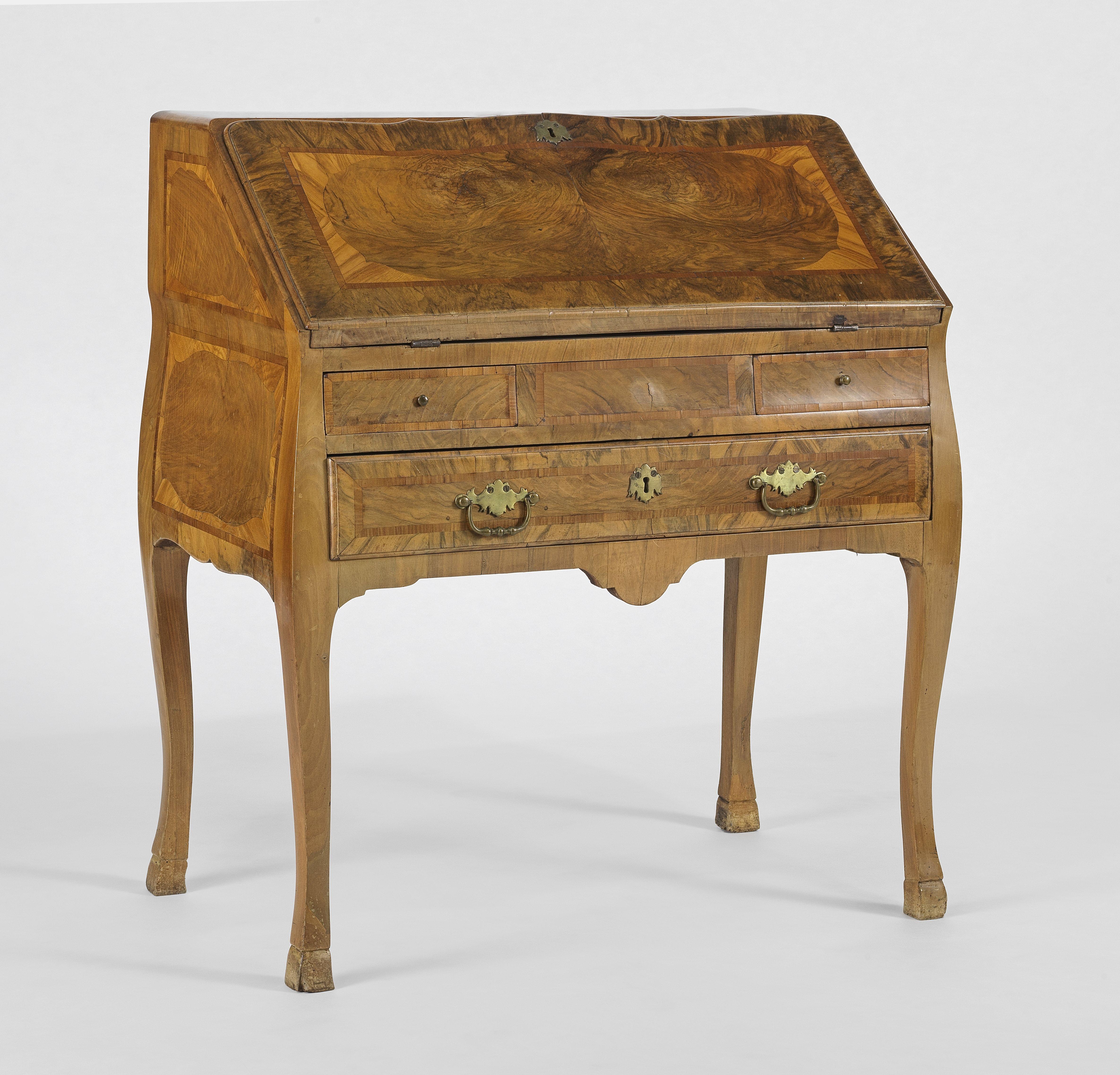 Un abattant, trois tiroirs, bois marqueté, 100x87x52 cm