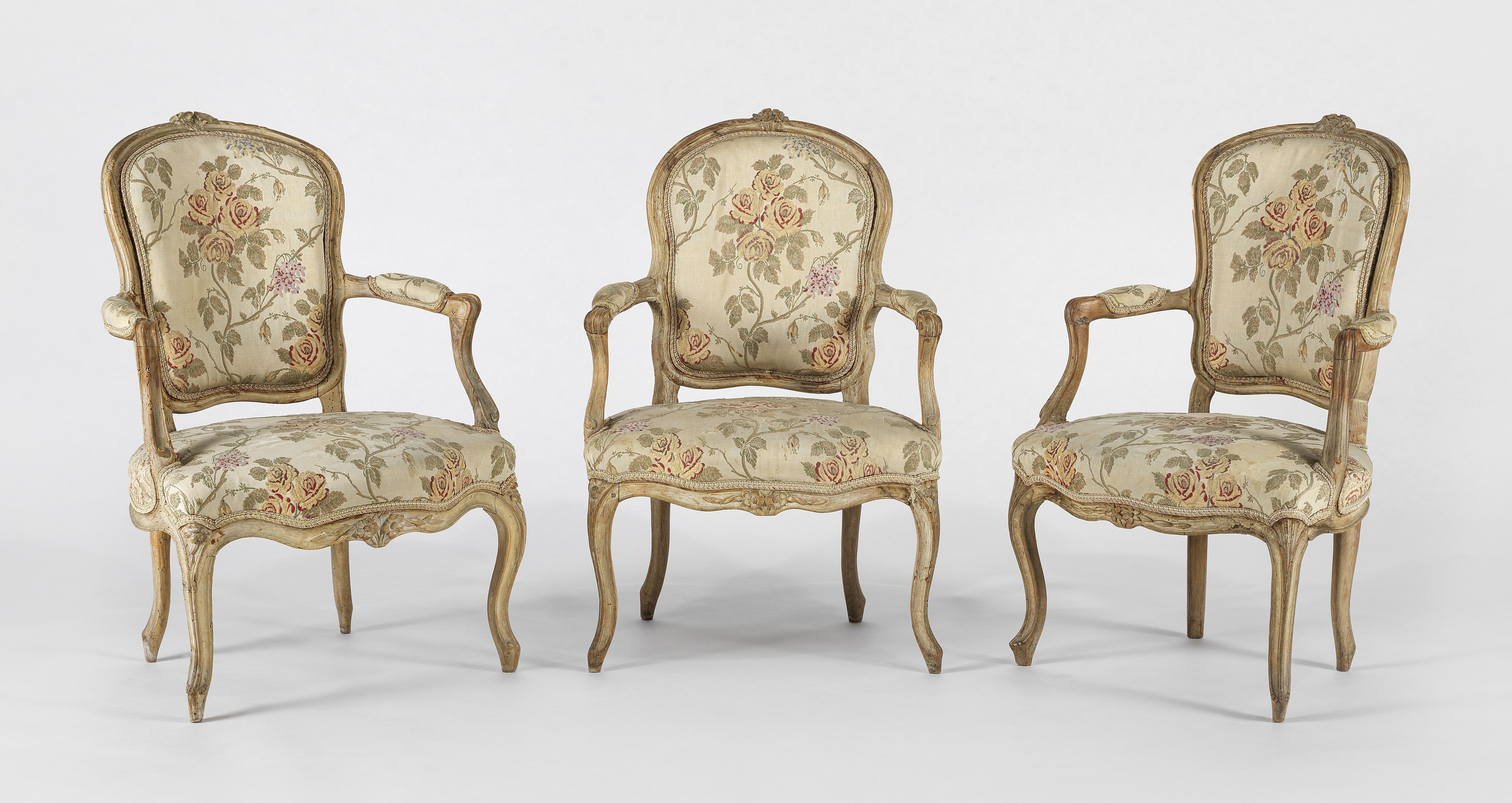 3719. Suite de trois fauteuils cabriolets d'époque Louis XV