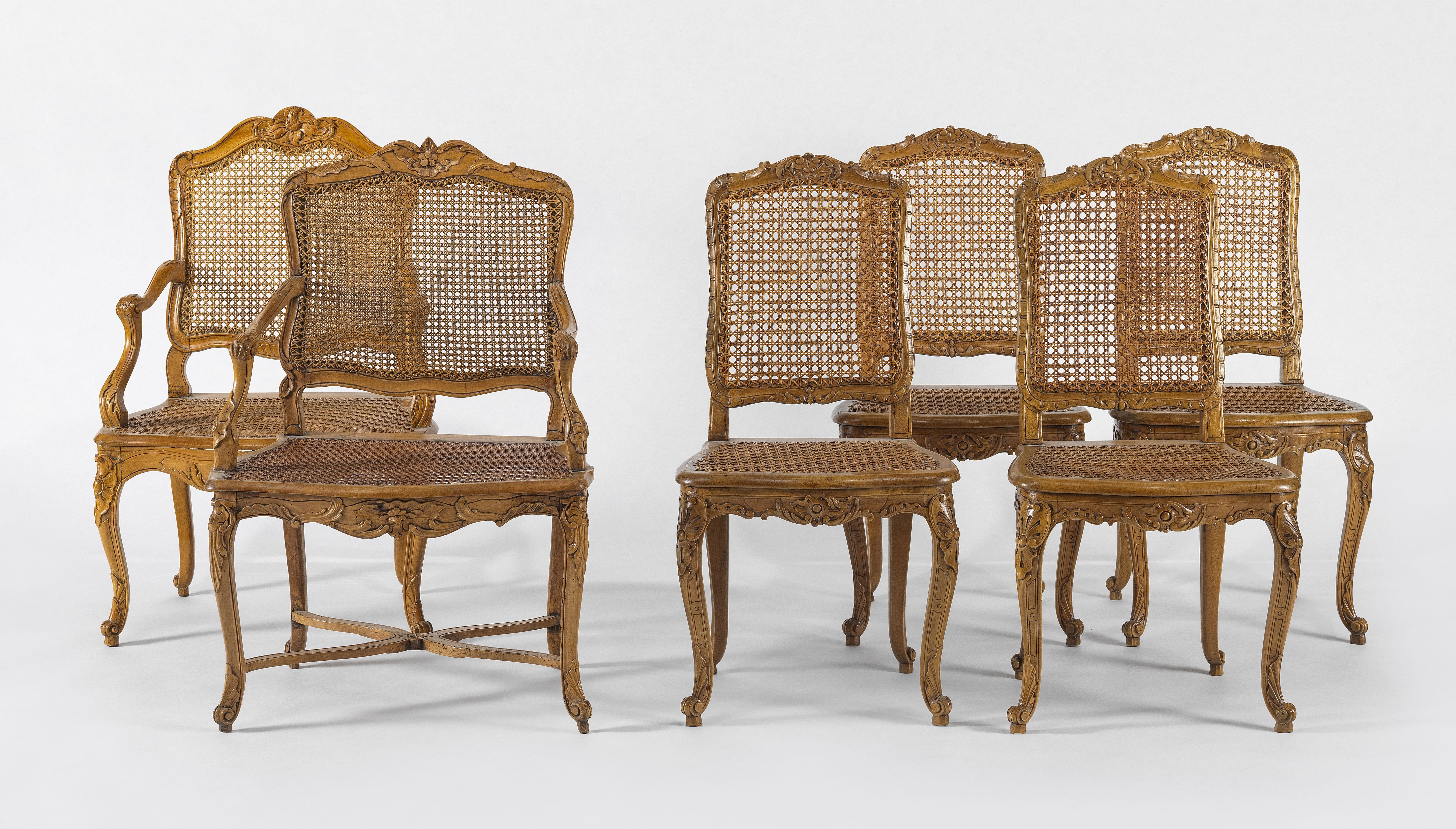 3722. Quatre chaises et deux fauteuils d'époque Louis XV