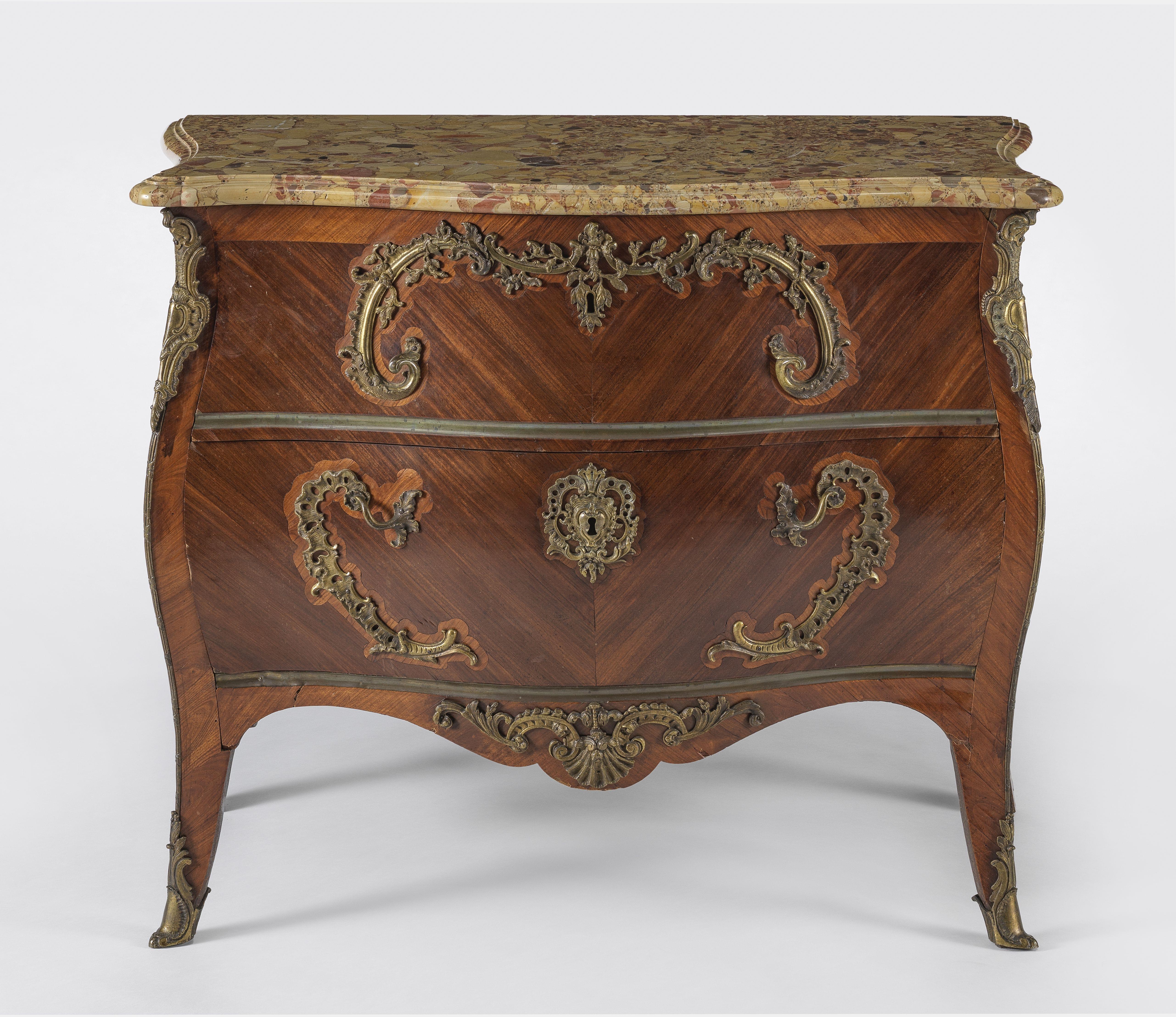 Cinq tiroirs, placage de bois de rose et bois de violette marque...