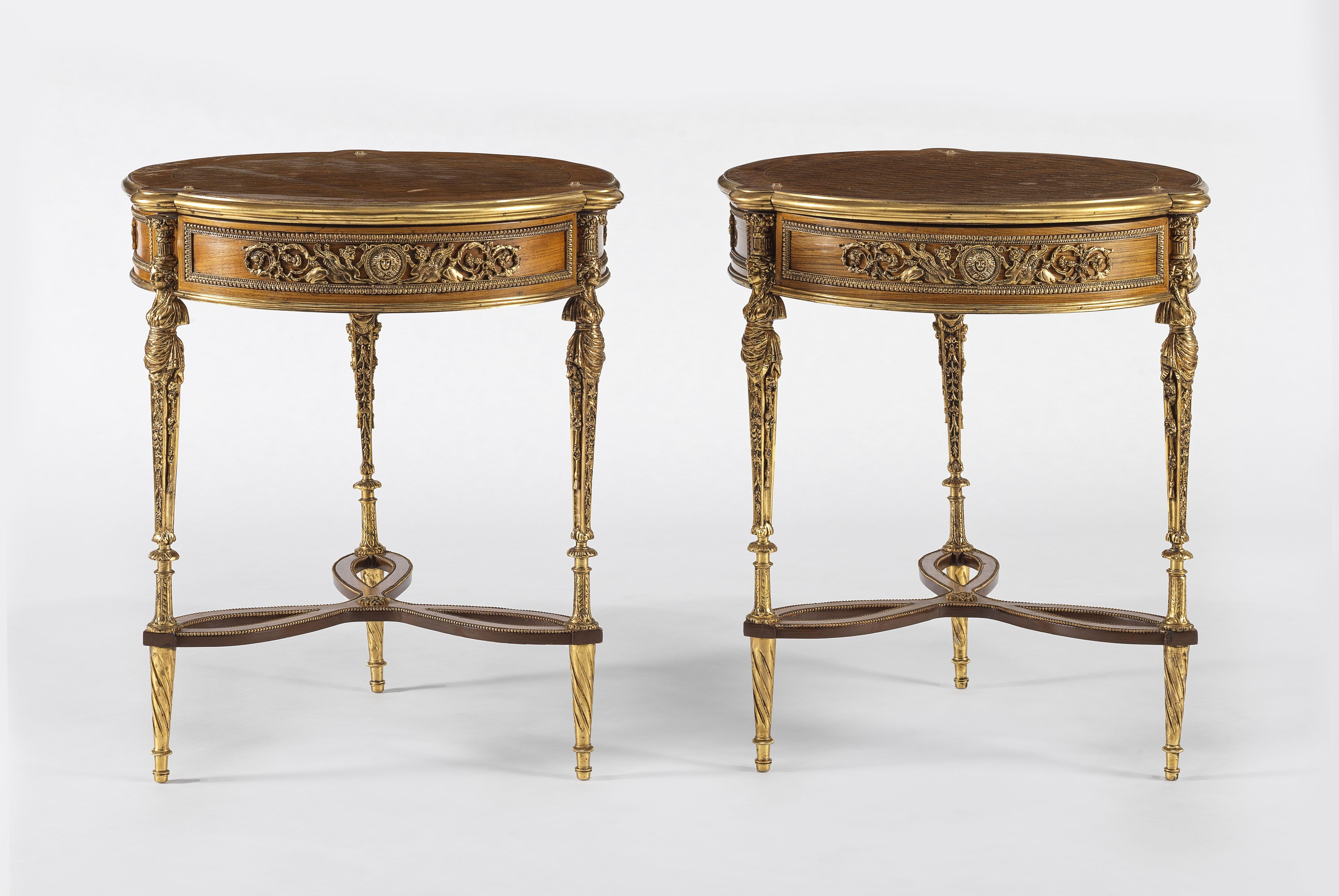 Bois satiné à décor peint de portrait de jeune femme. Provenance...