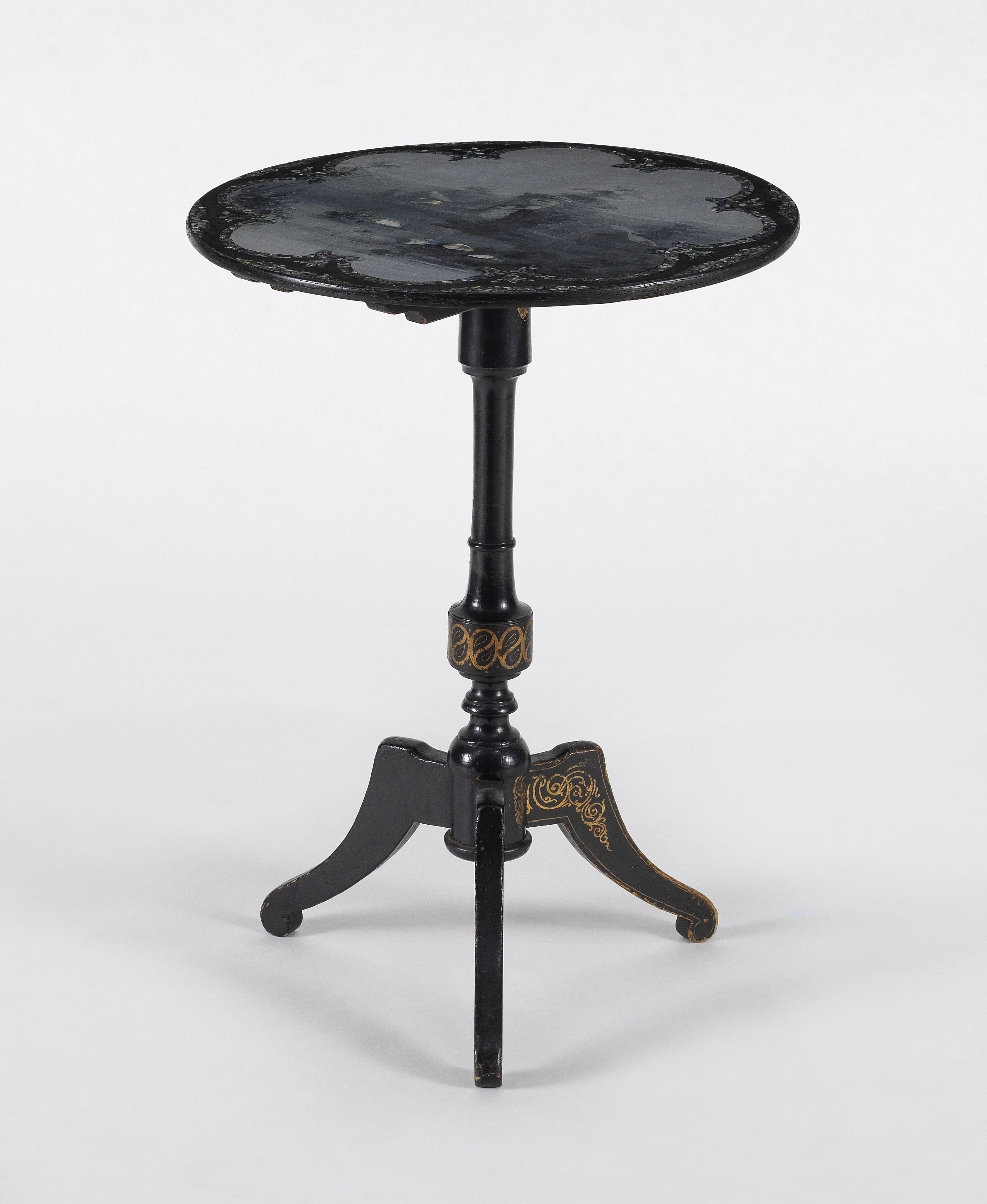 Plateau à décor peint d'un paysage lacustre incrusté de nacre, 72x55 cm