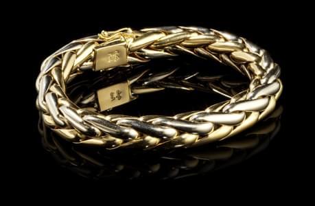 346. Caplain Paris, bracelet à maille palmier bicolore terminé par un...