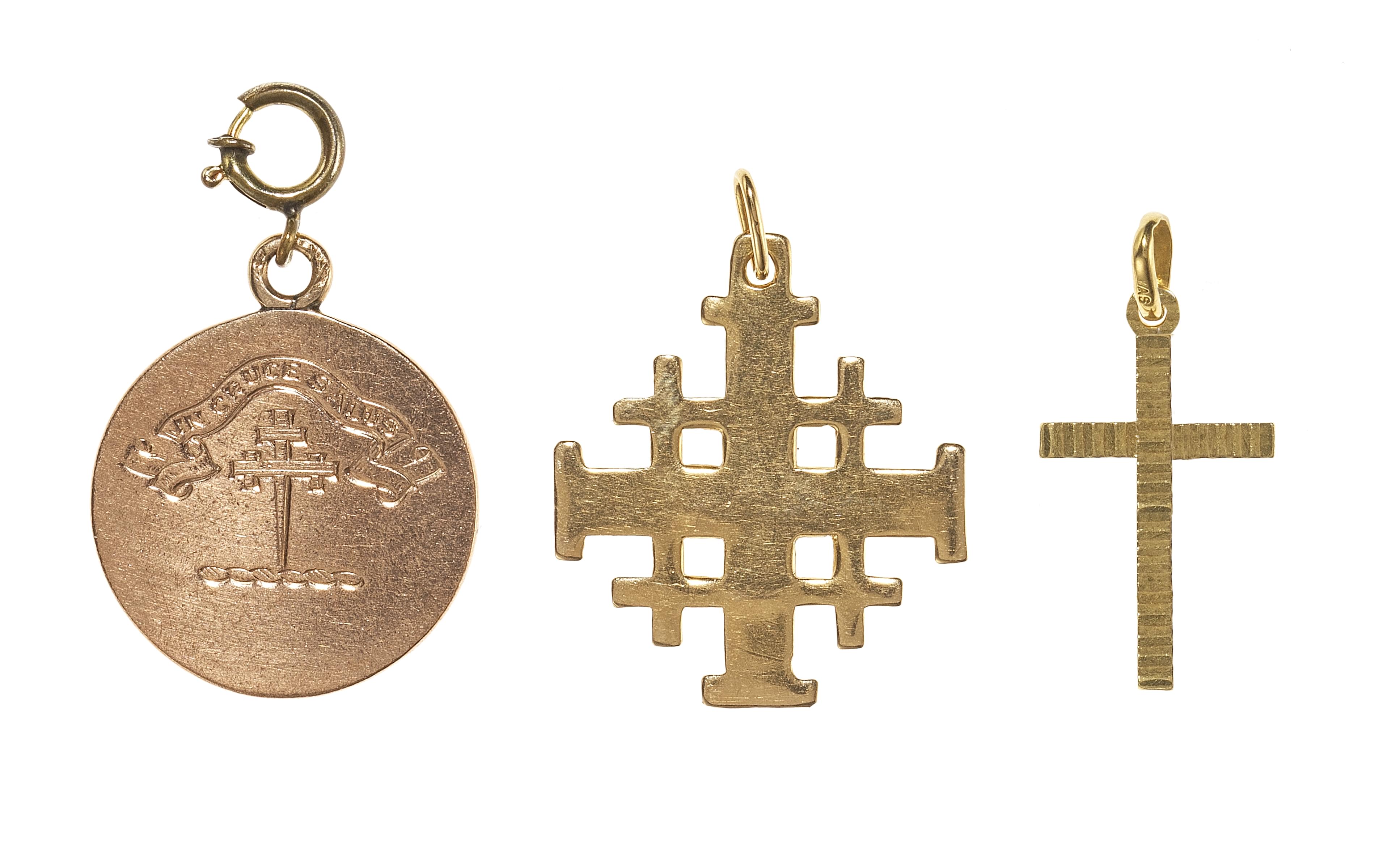3874. Lot d'une médaille "In Cruce Salus" et de deux croix