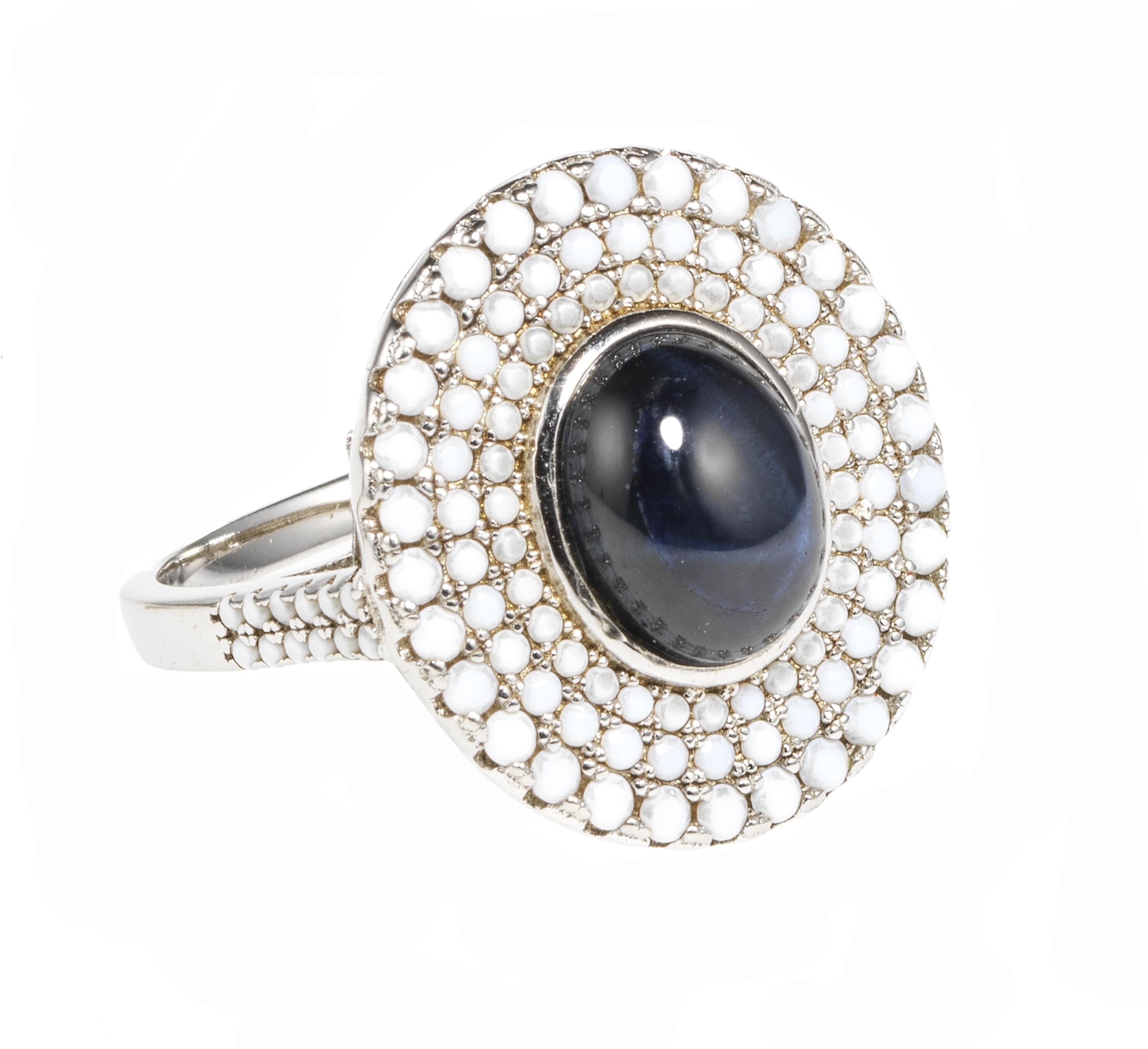 Entouré d'un pavage d'opales blanches taille cabochon, argent 925, doigt 55-15