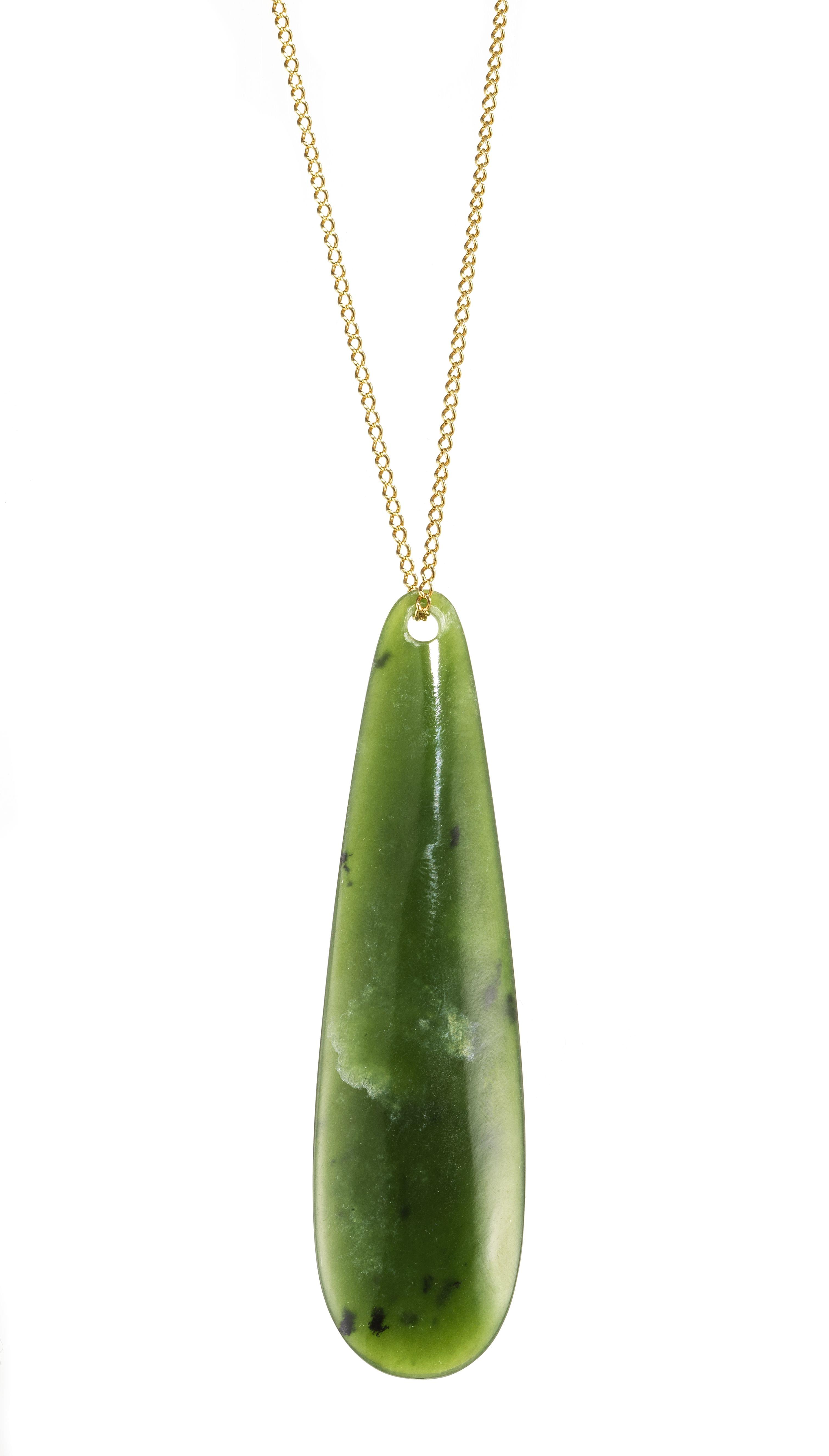 3969. Pendentif en jade néphrite retenu par une chaîne à maille gourmette