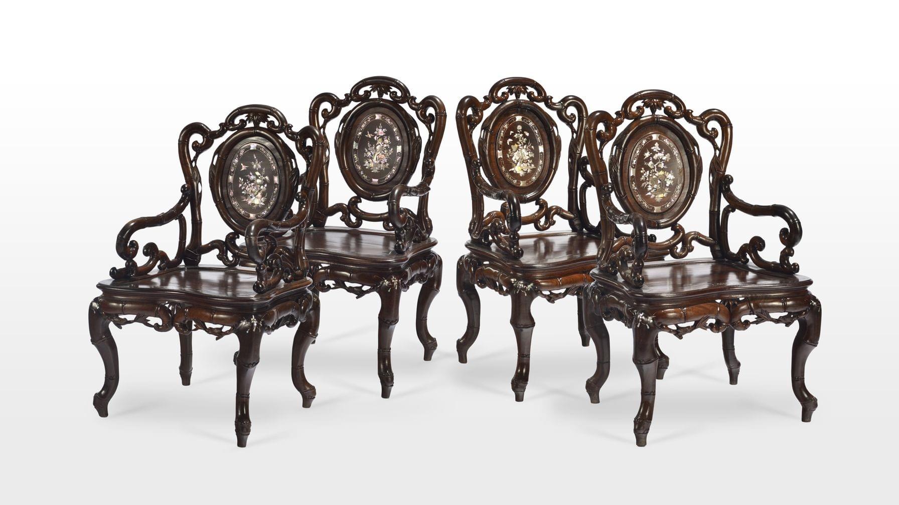 602. Suite de douze chaises et deux fauteuils de style George II par...