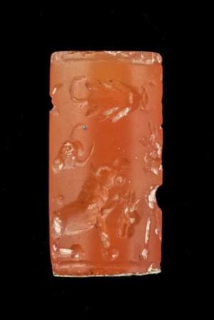 81. 4 sceaux-cylindres, marbre beige, cristal de roche, cornaline et marbre gris, probablement Djemdet-Nasr, 3000-2900 av. JC, ou, dynastie archaïque, tôt, 2900-2600 av. JC