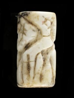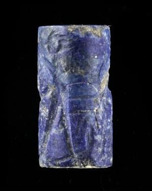92. 4 sceaux-cylindres, marbre et lapis lazuli, albâtre et cornaline, dynastie archaïque, tardif, 2600-2340 av. JC