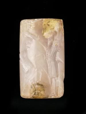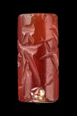 165. 4 sceaux-cylindres, pierre rubanée, cornaline, calcédoine et lapis lazuli, néo-assyrien, 934-610 av. JC, ou néo-babylonien, 1000-539 av. JC