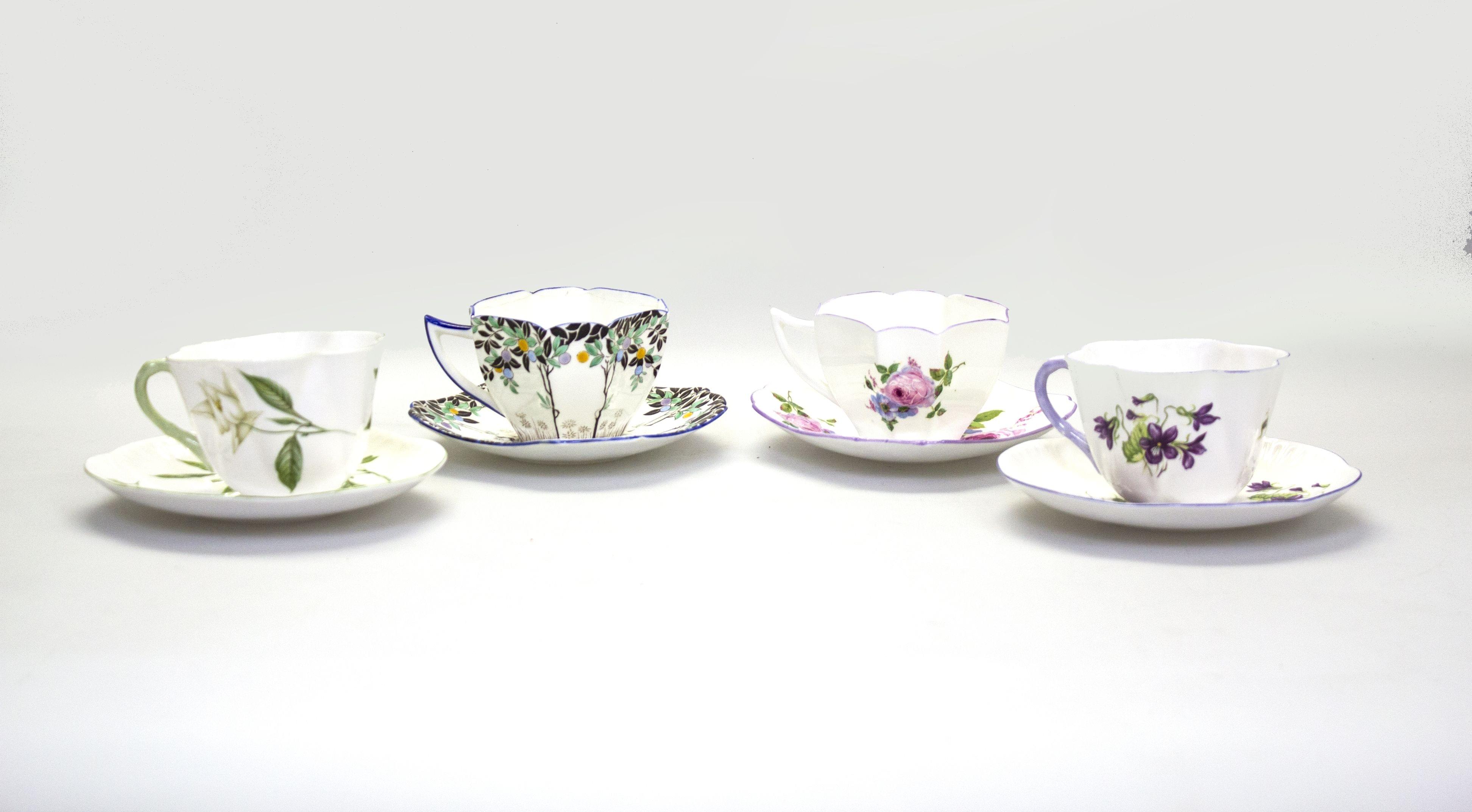 3254. 4 tasses et soucoupes Art déco à motif de fleurs