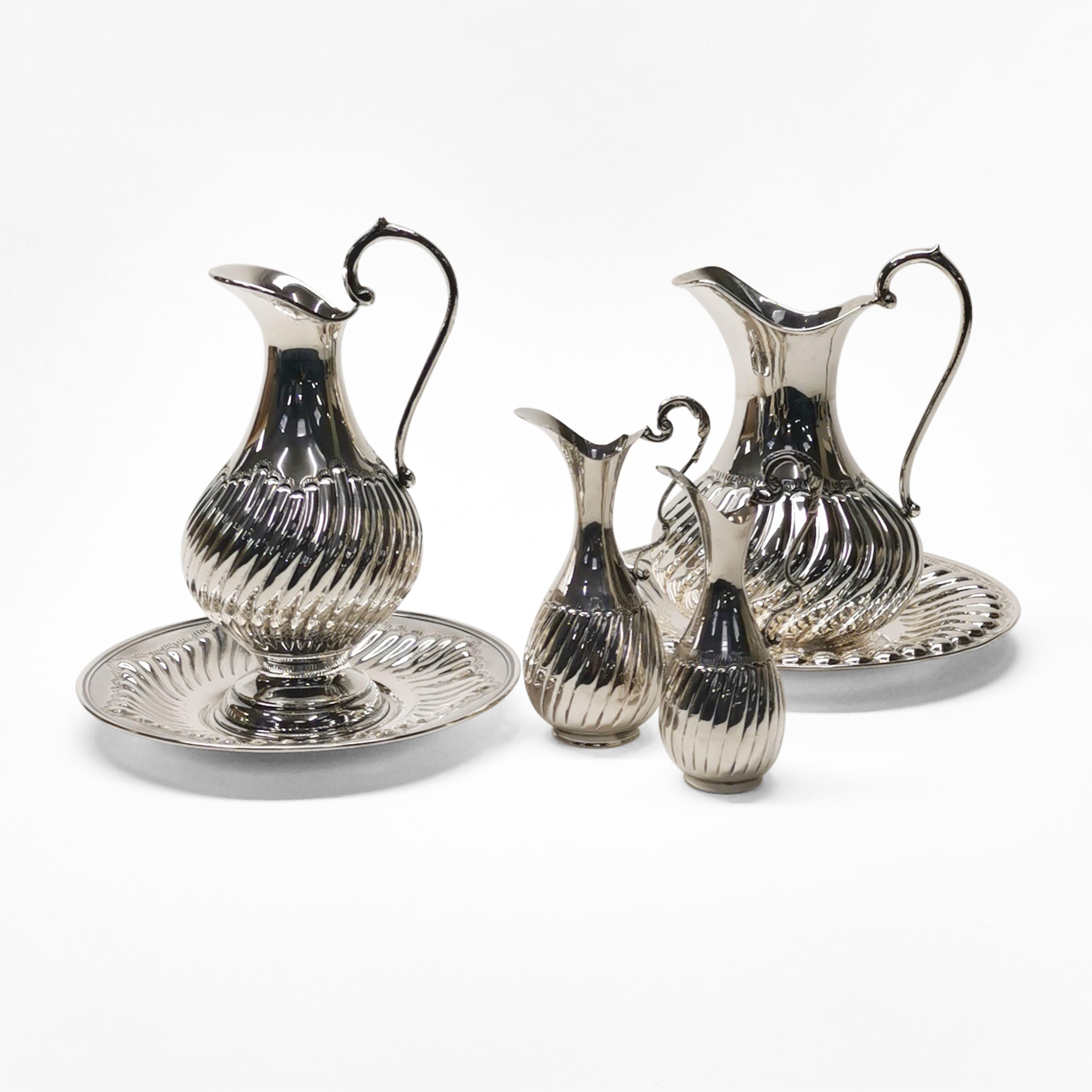 3853. Verseuse, pot à lait et saucière à motif de fleurs et volutes