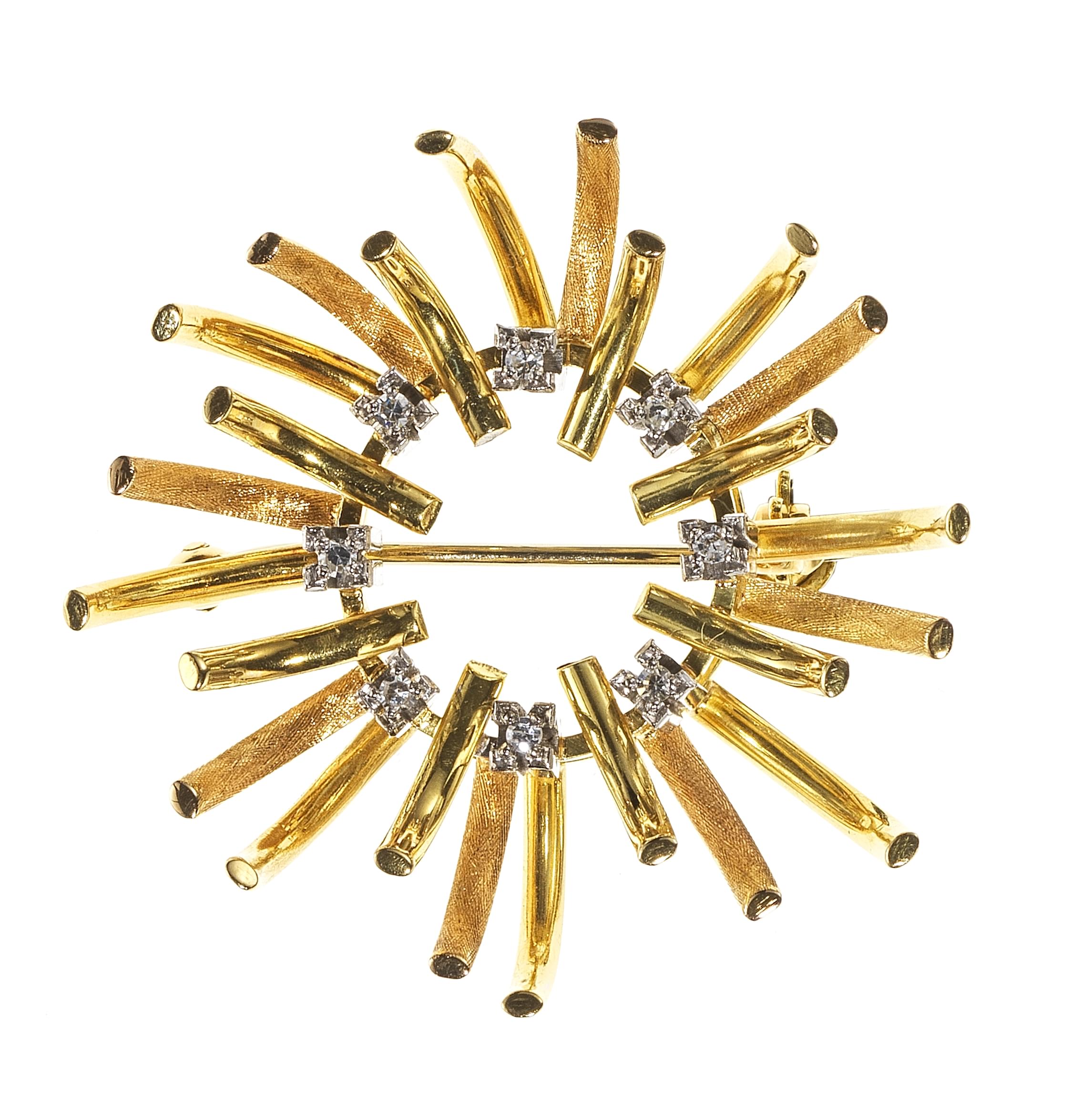 4067. Broche soleil ajourée et stylisée sertie de diamants