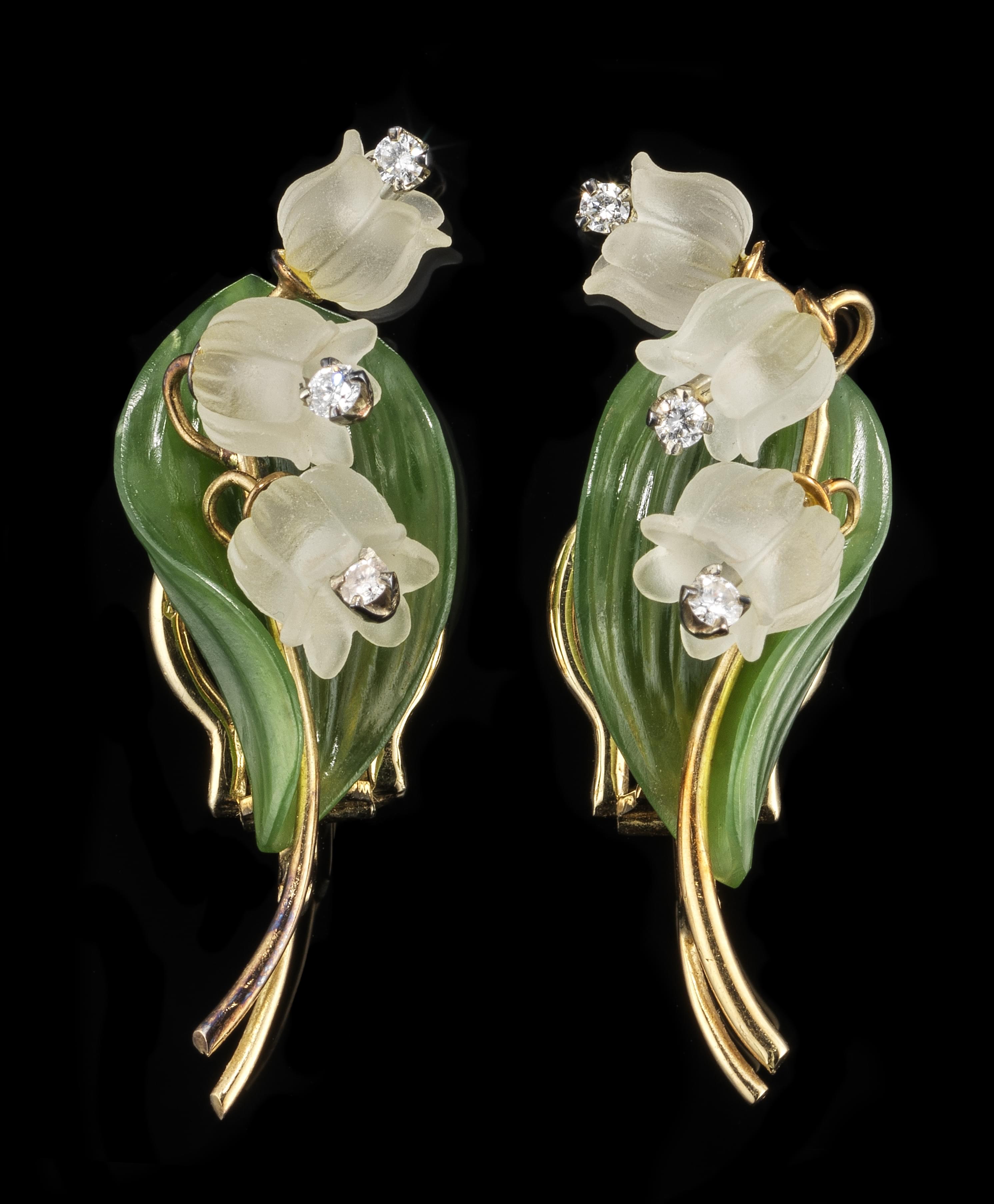 Rehaussées de pavages de diamants, or 750, H env. 1,5 cm, 18 g