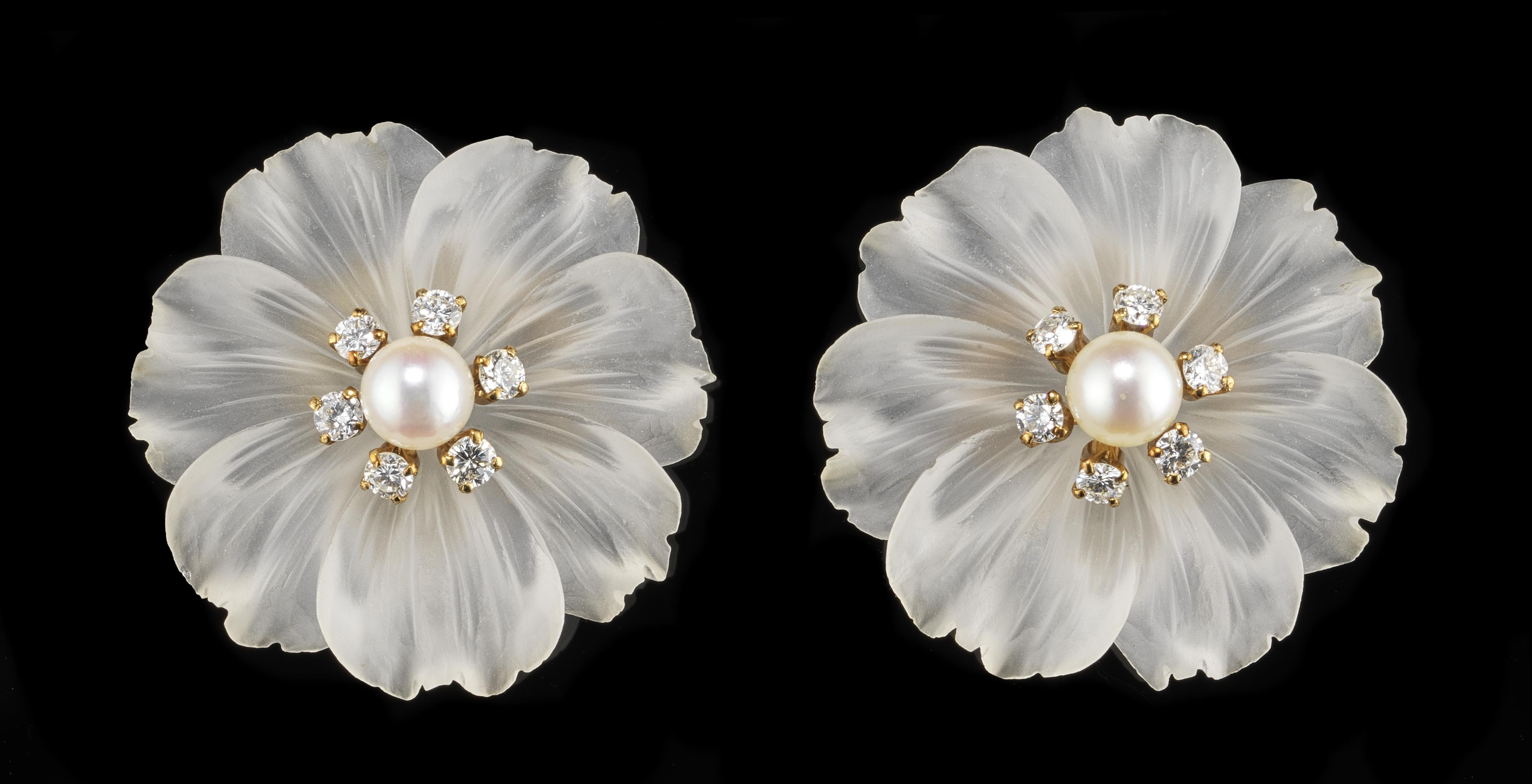 Rehaussées de pavages de diamants, or 750, H env. 1,5 cm, 18 g