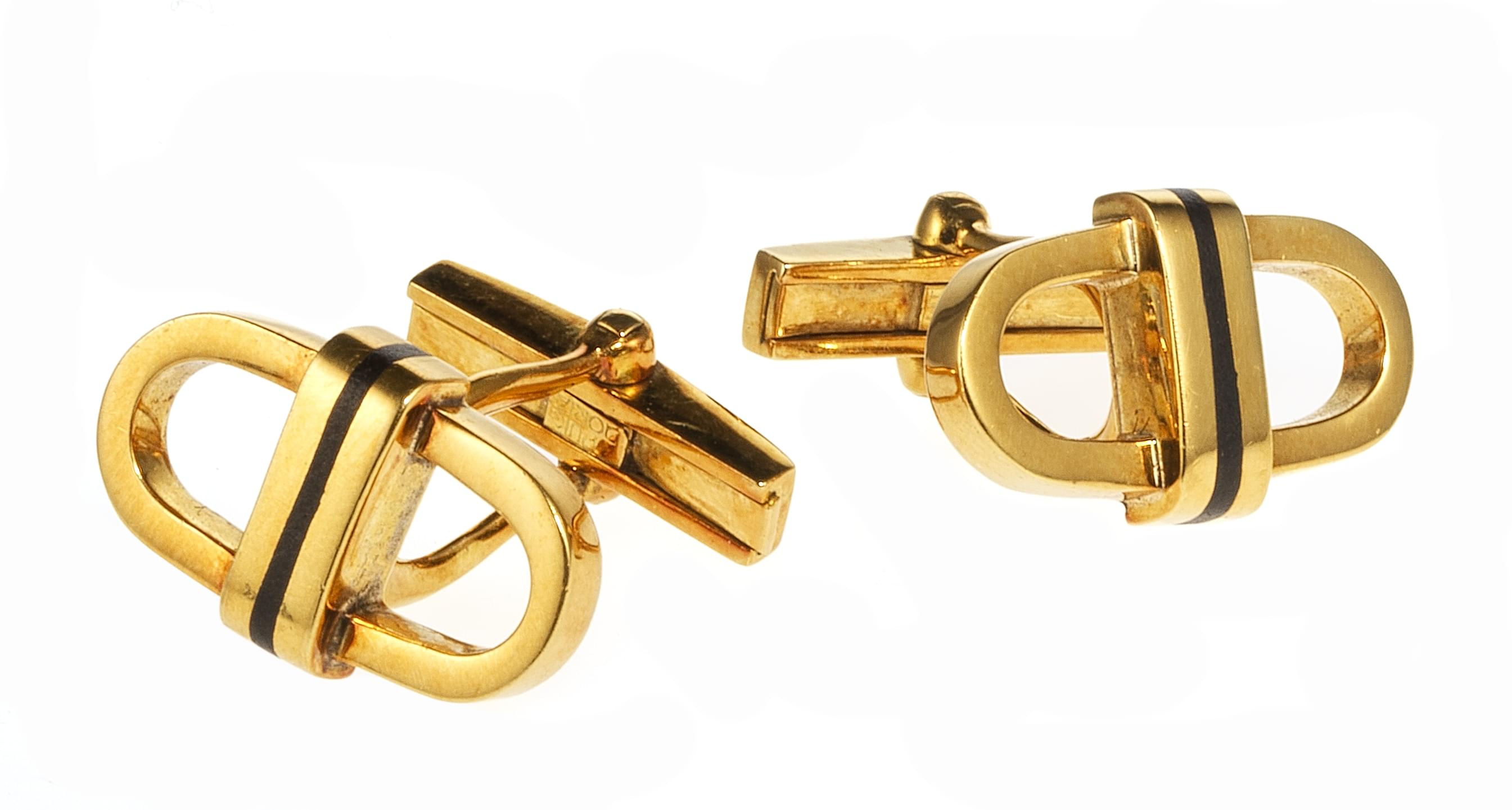 4130. Puig Doria, boutons de manchette à motif ajouré ovale, émaillés d'une ligne noire