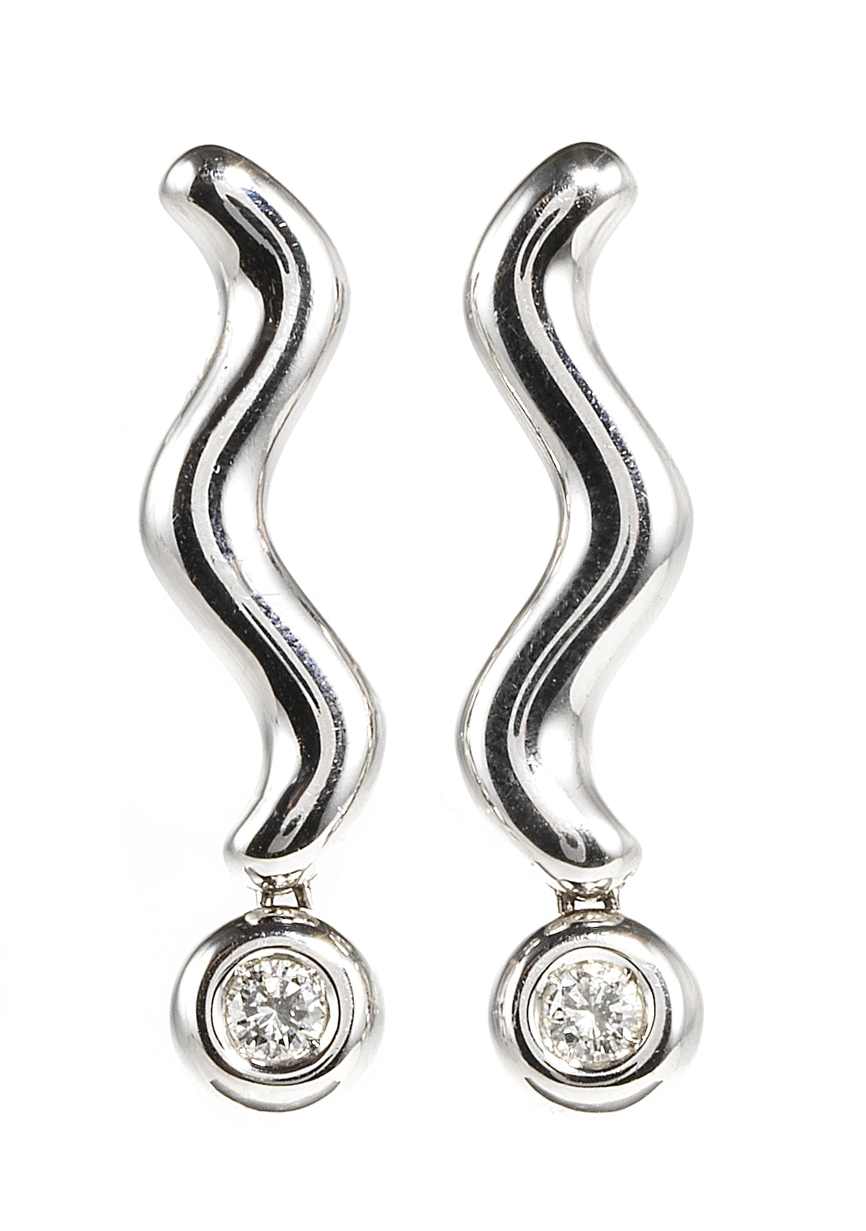 4141. Antonini, boucles d'oreilles à motif de vagues terminées par un diamant (env. 0,4 ct)