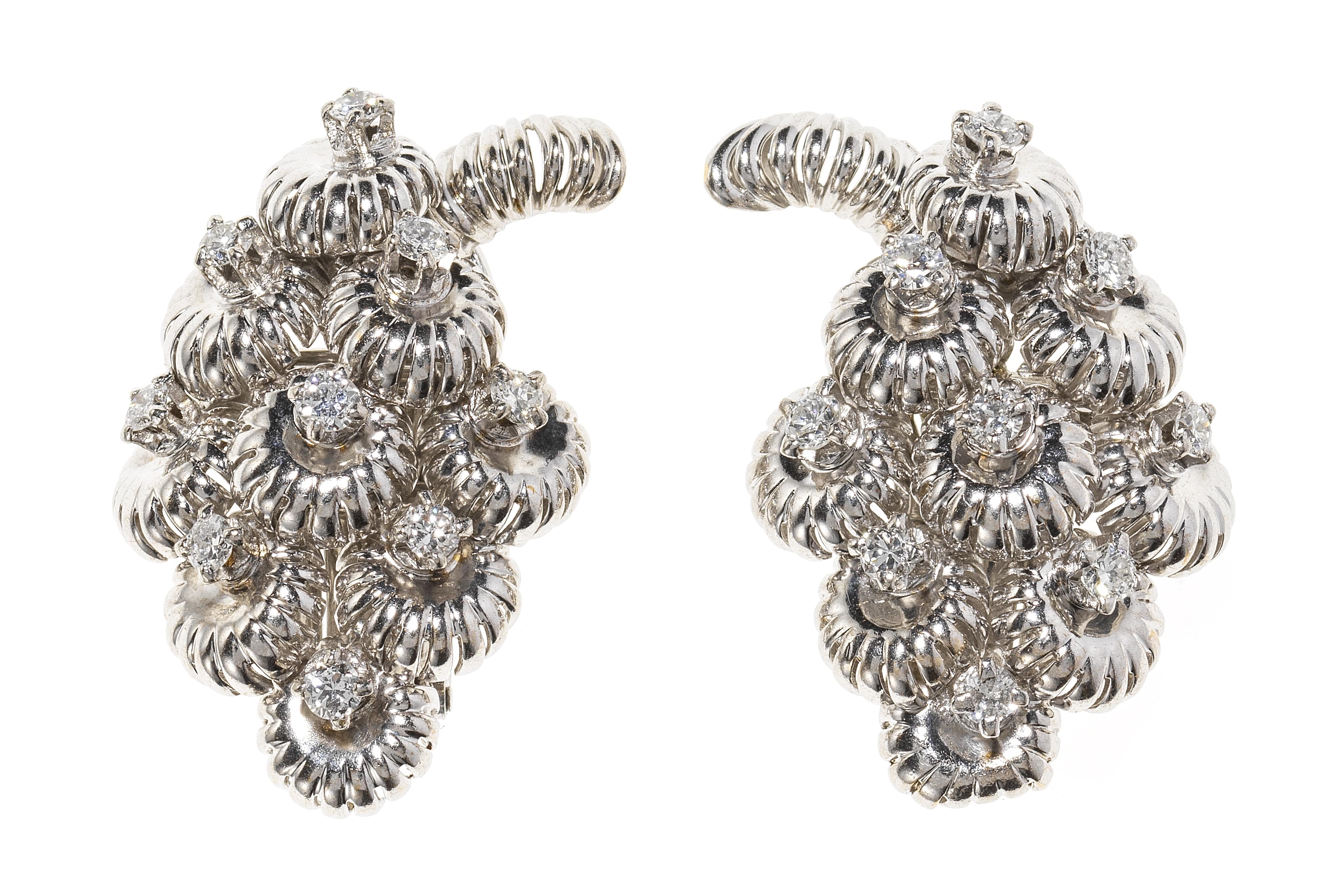 4160. Clips d'oreilles à motifs de grappes de raisin stylisées serties de diamants (env. 0,9 ct)