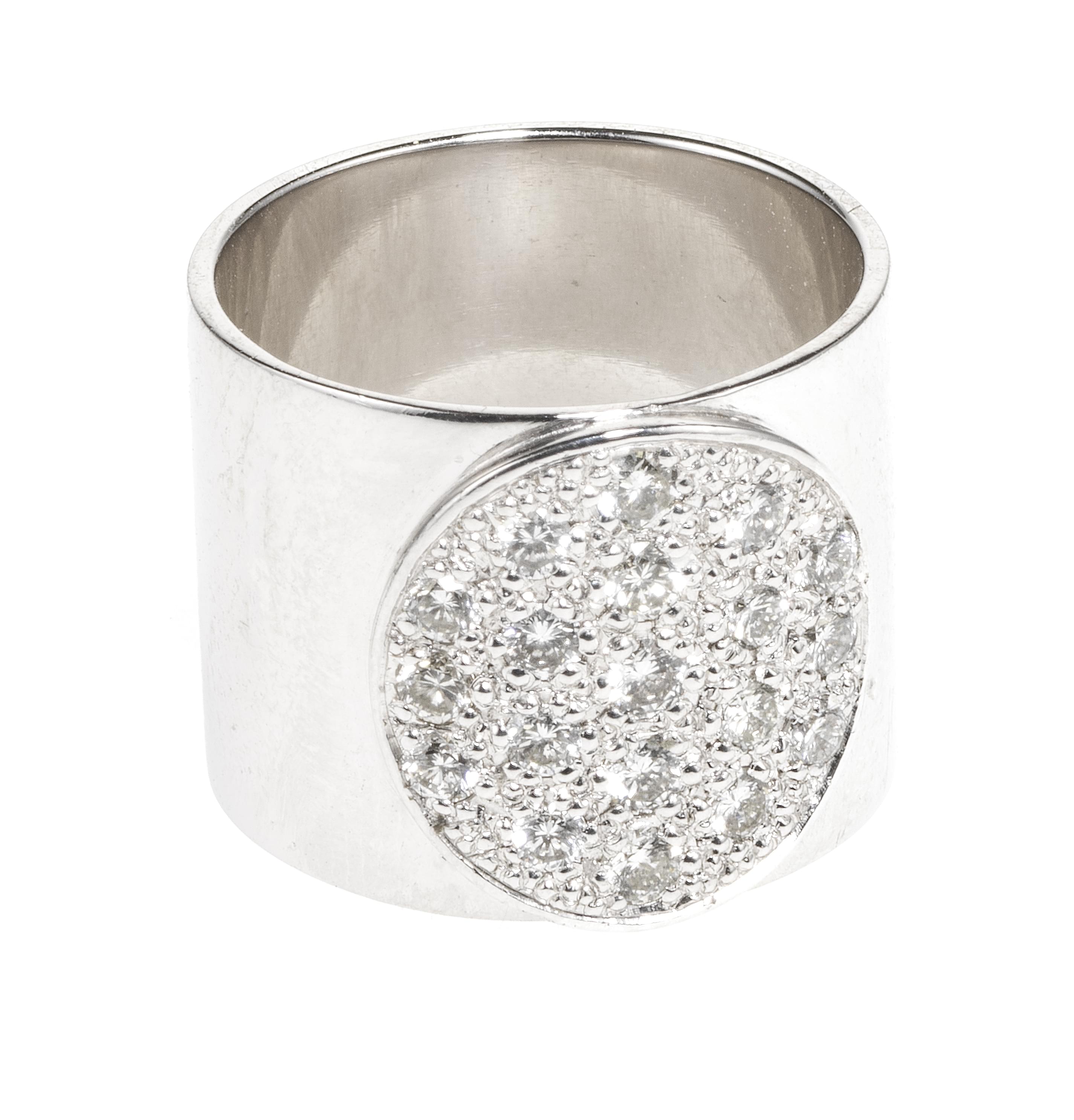 4165. Anneau large centré d'un motif pavé de diamants (env. 0,6 ct)