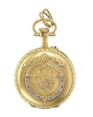 4276. Montre de poche montée en pendentif monogrammée GB à décor de guirlande et sertie de petites roses de diamant