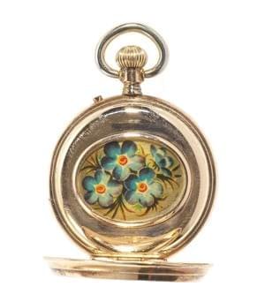 Cadran émaillé blanc, aiguilles dorées, chiffres romains noirs, or 585, D 34 mm, poids brut 31 g