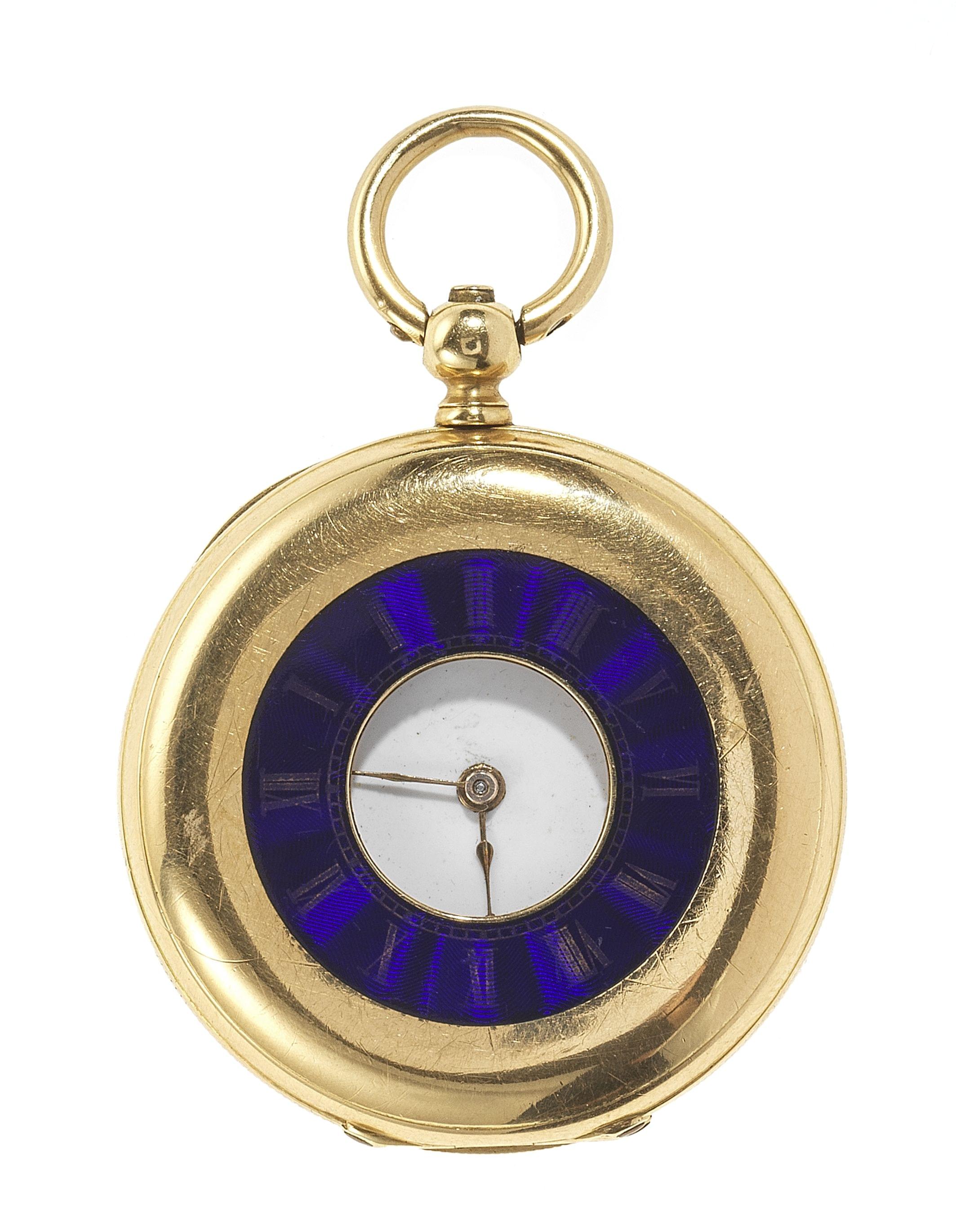 4281. Charles Oudin, horloger de la Marine, montre de poche monogrammée MC et émaillée bleue