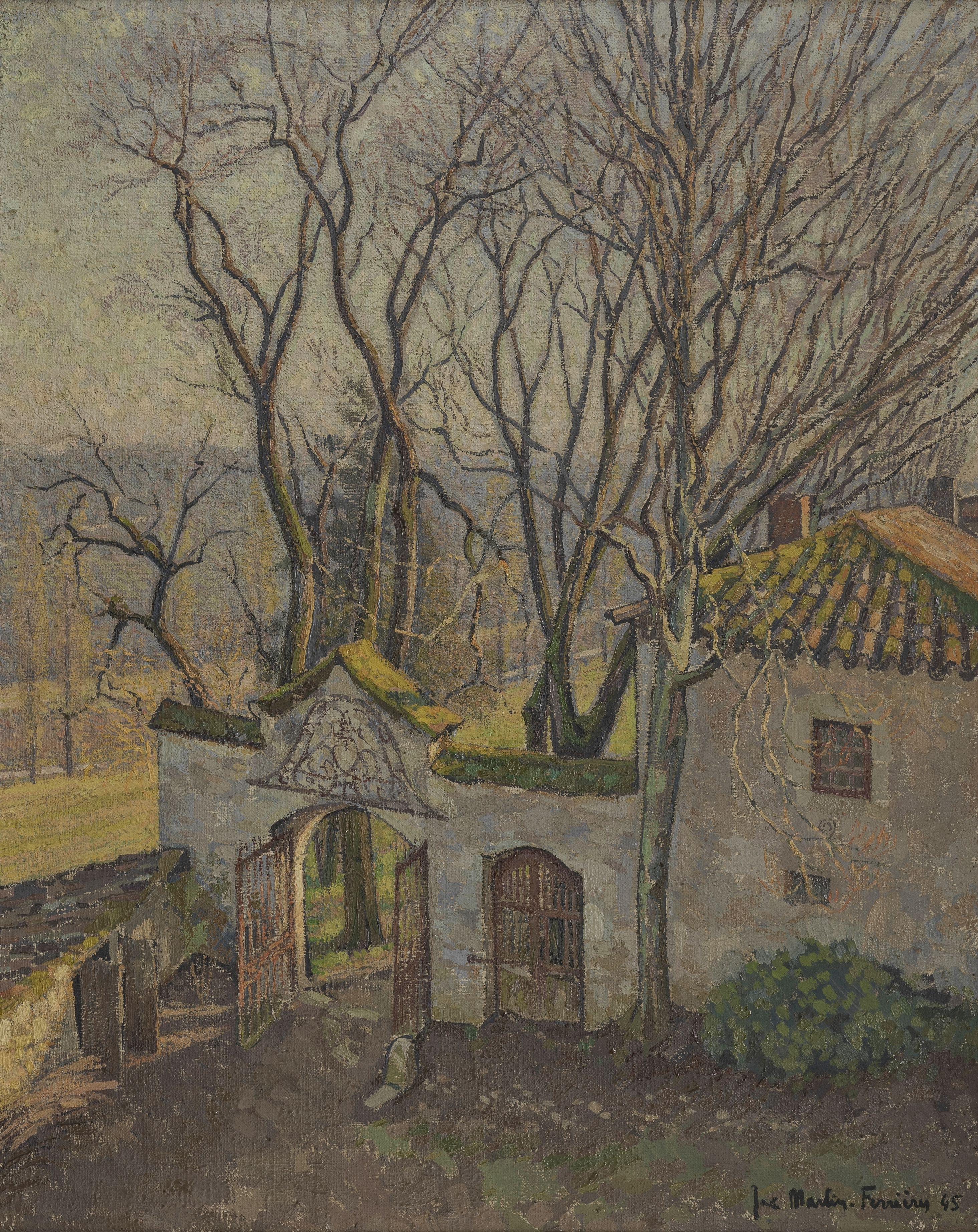 Paysan avec cariole, huile sur toile, signée et datée 1976, 39x5...