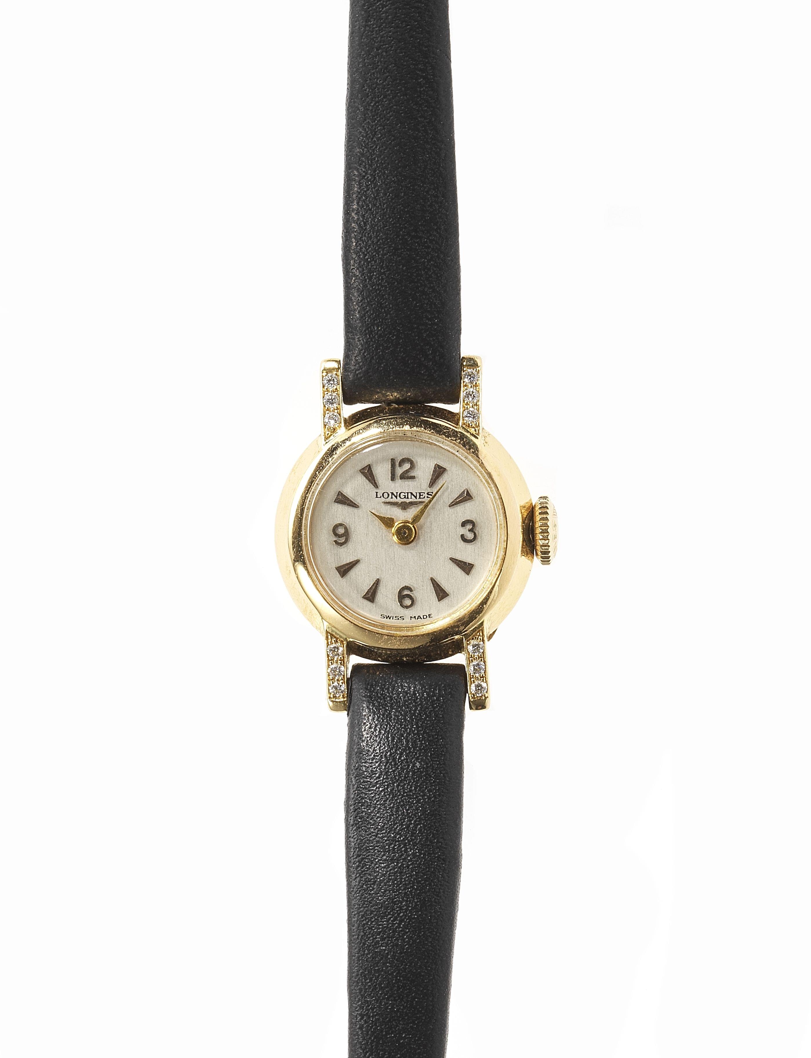 Cadran crème, aiguilles dorées, index en diamants, or 750, L env...