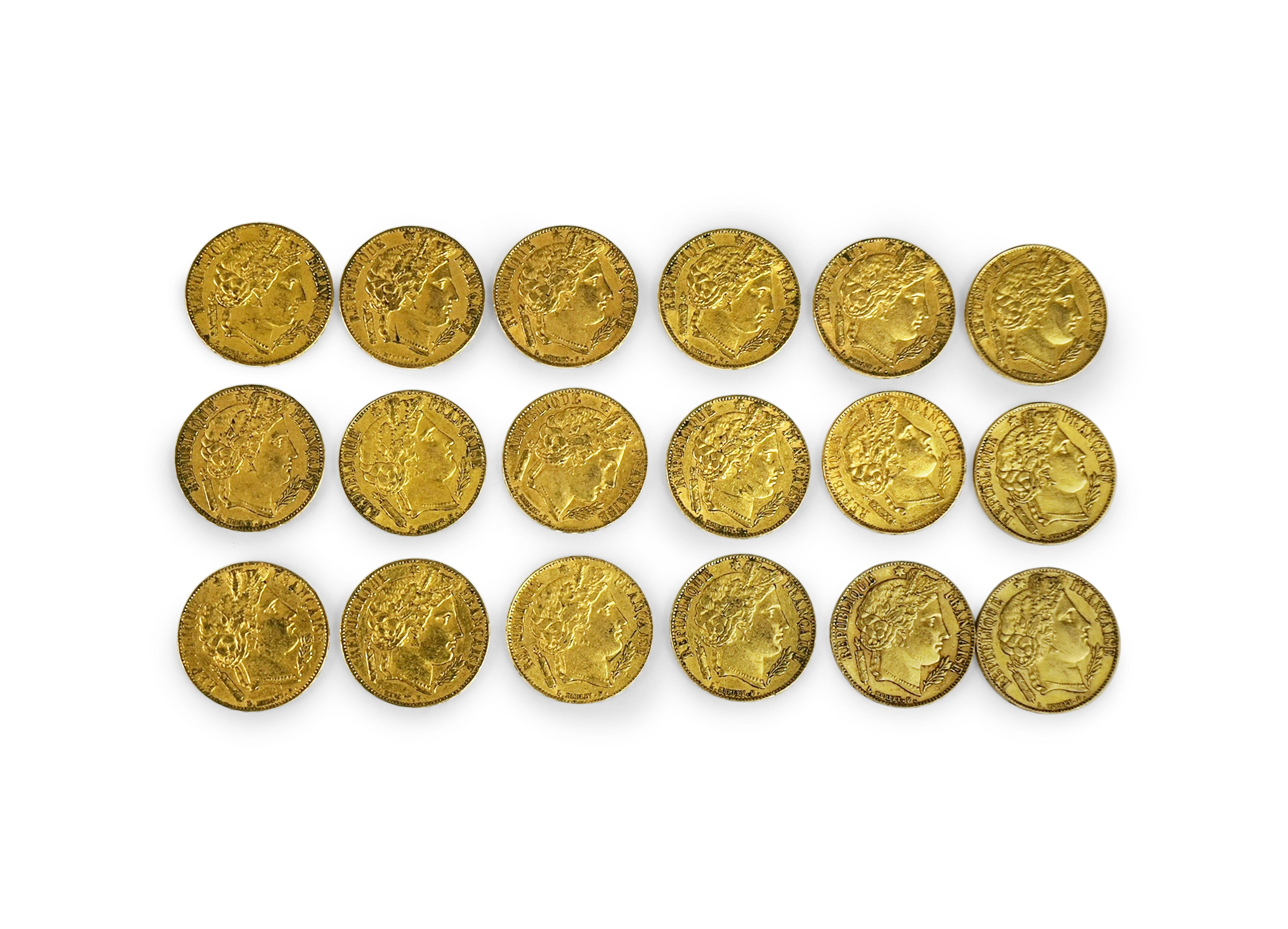 4360. Lot de dix-huit pièces de 20 francs Cérès, IIème République