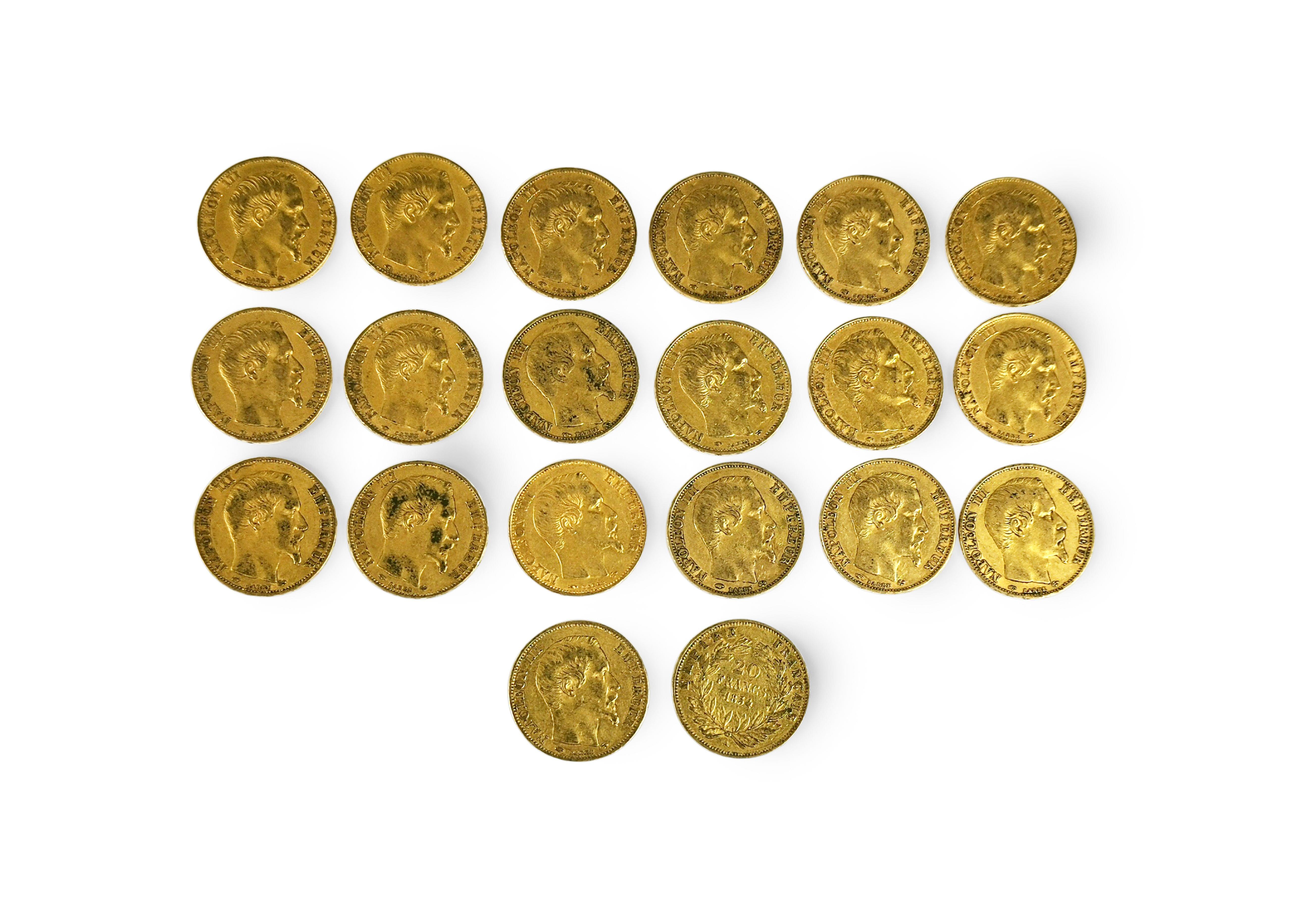 4368. Lot de vingt pièces de 20 francs Napoléon III (tête nue)