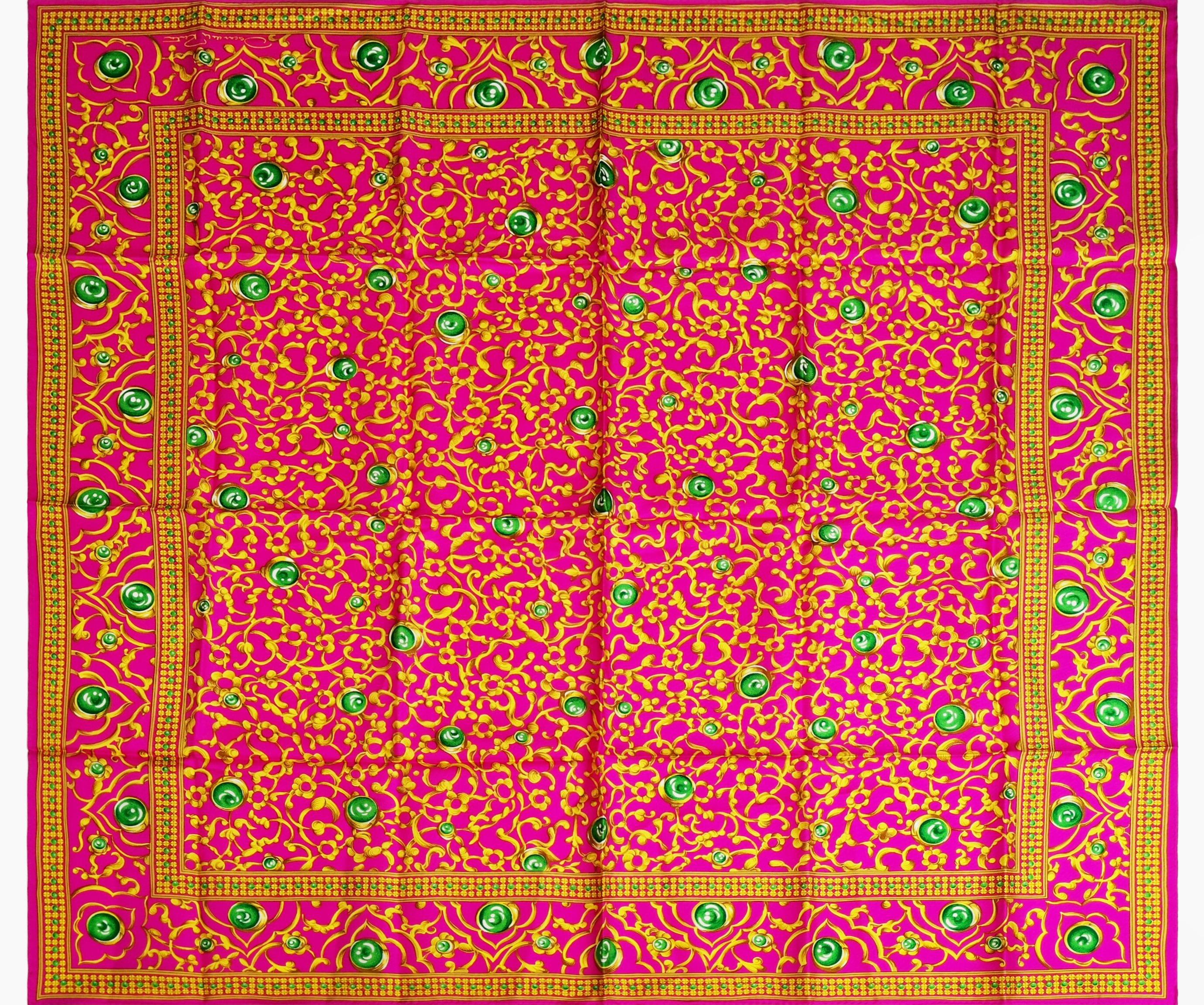 Décor de panthère et fleurs exotiques, soie, env. 68x68 cm. Dans...