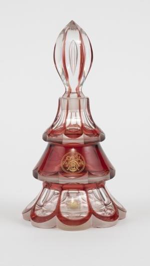 Flacon, verre overlay teinté rouge, H 26 cm. Modèle édité à l'oc...