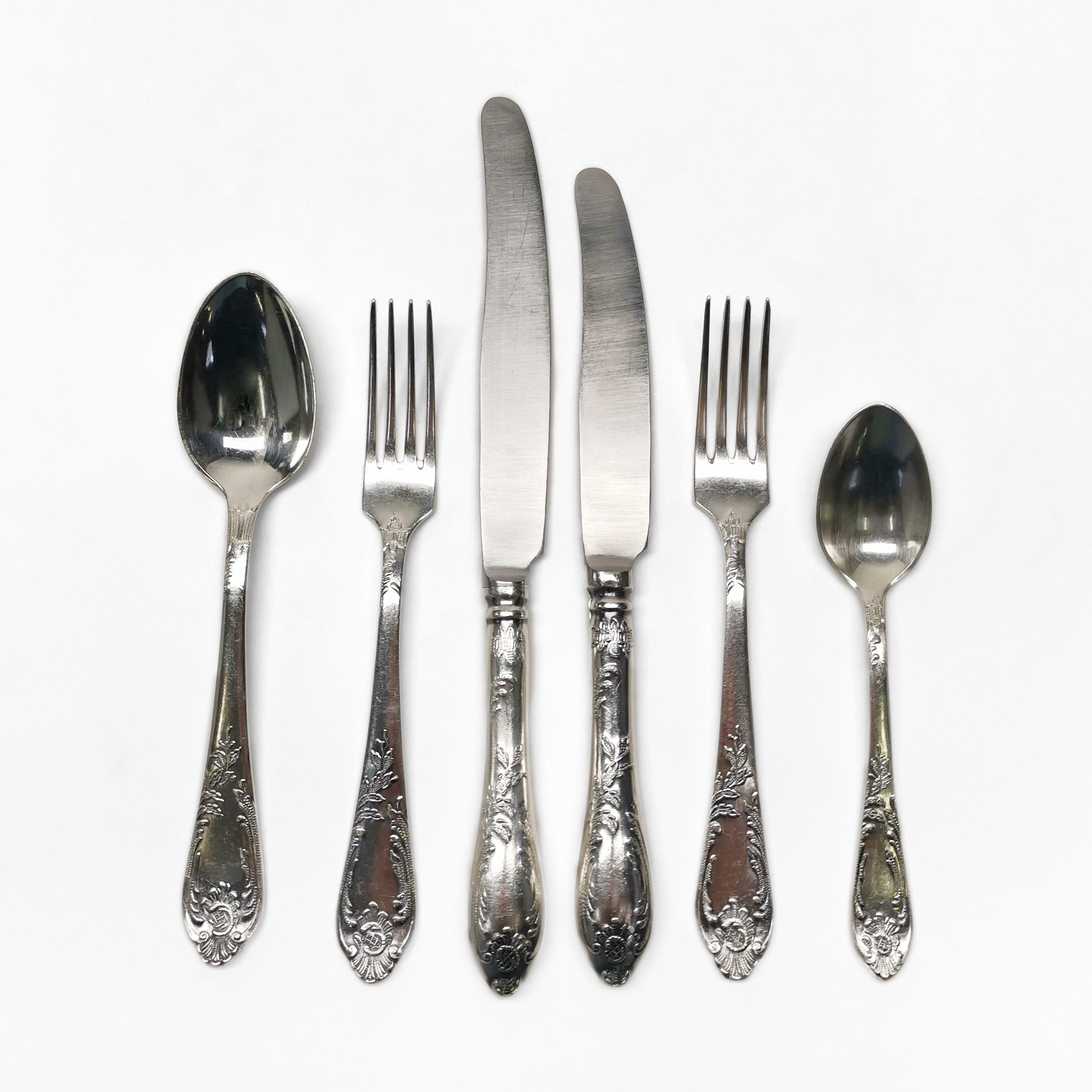 URSS, métal argenté: comprenant: 24 fourchettes, 24 couteaux, 24 cuillères, 24 fourchettes à dessert, 24 couteaux à dessert, 24 cuillères à dessert, 18 cuillères à thé, 10 cuillères à café et une louche