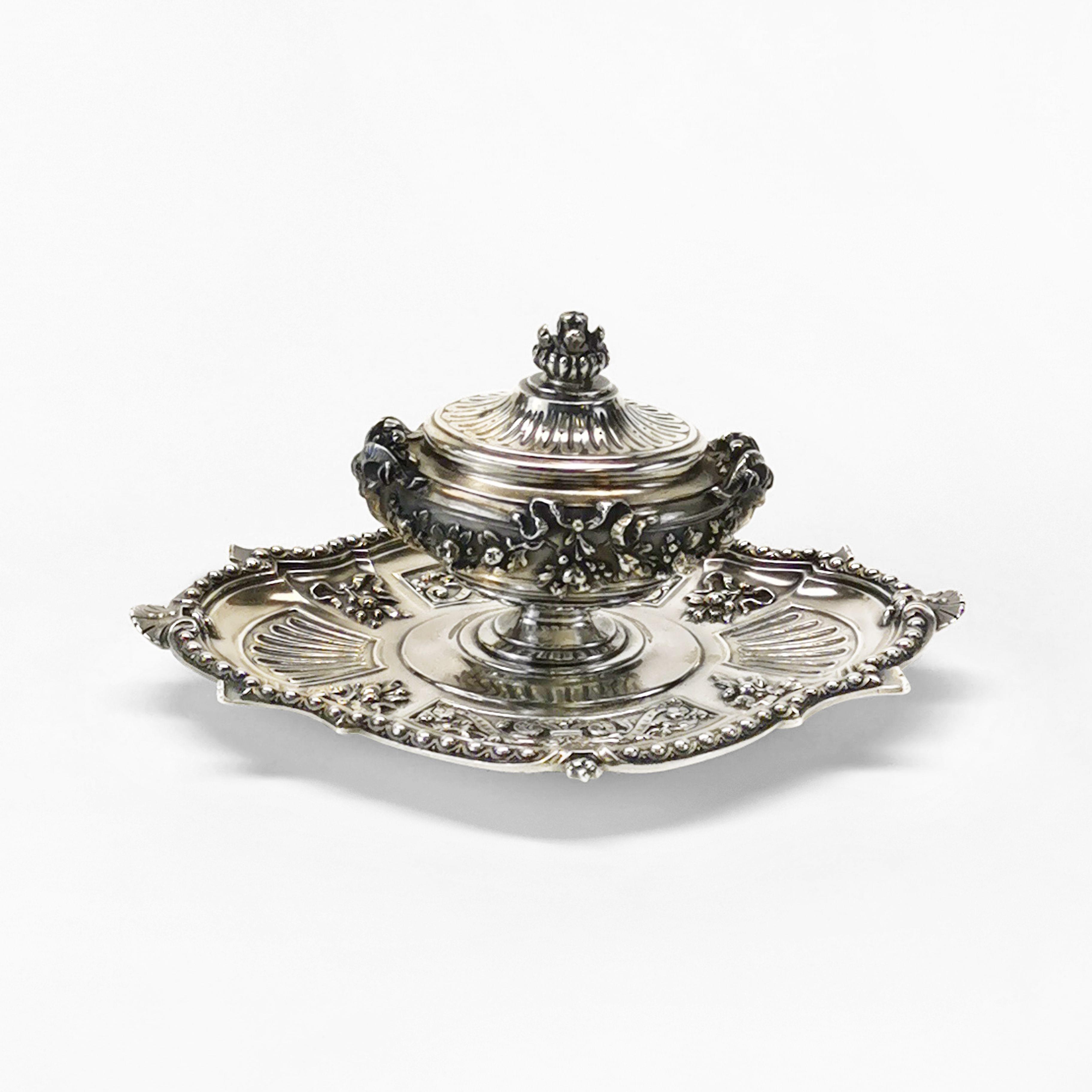 386. Encrier d'époque victorienne à anses coquille, dédicacé