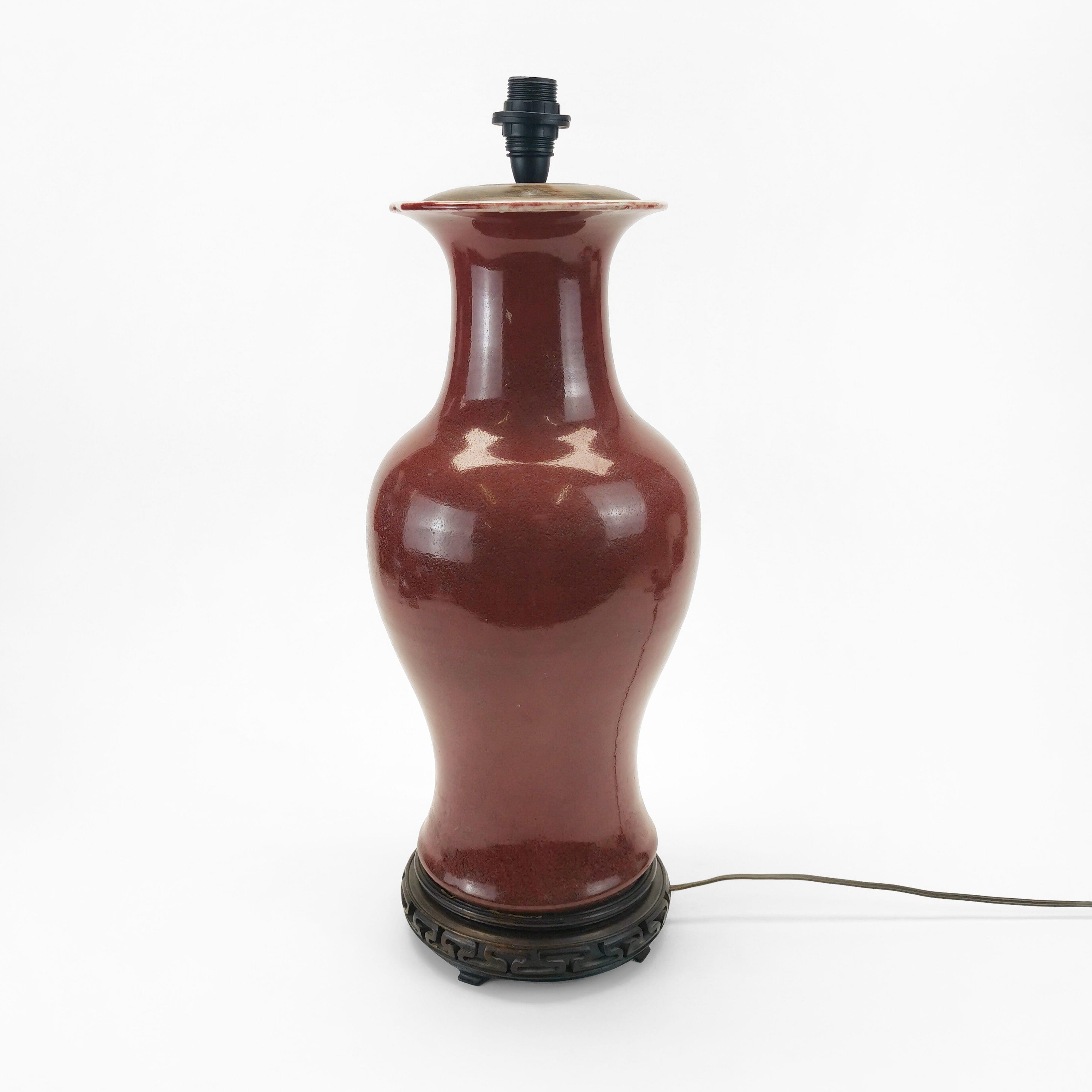 4652. Vase balustre sang de bœuf monté en lampe, Chine XIXe s