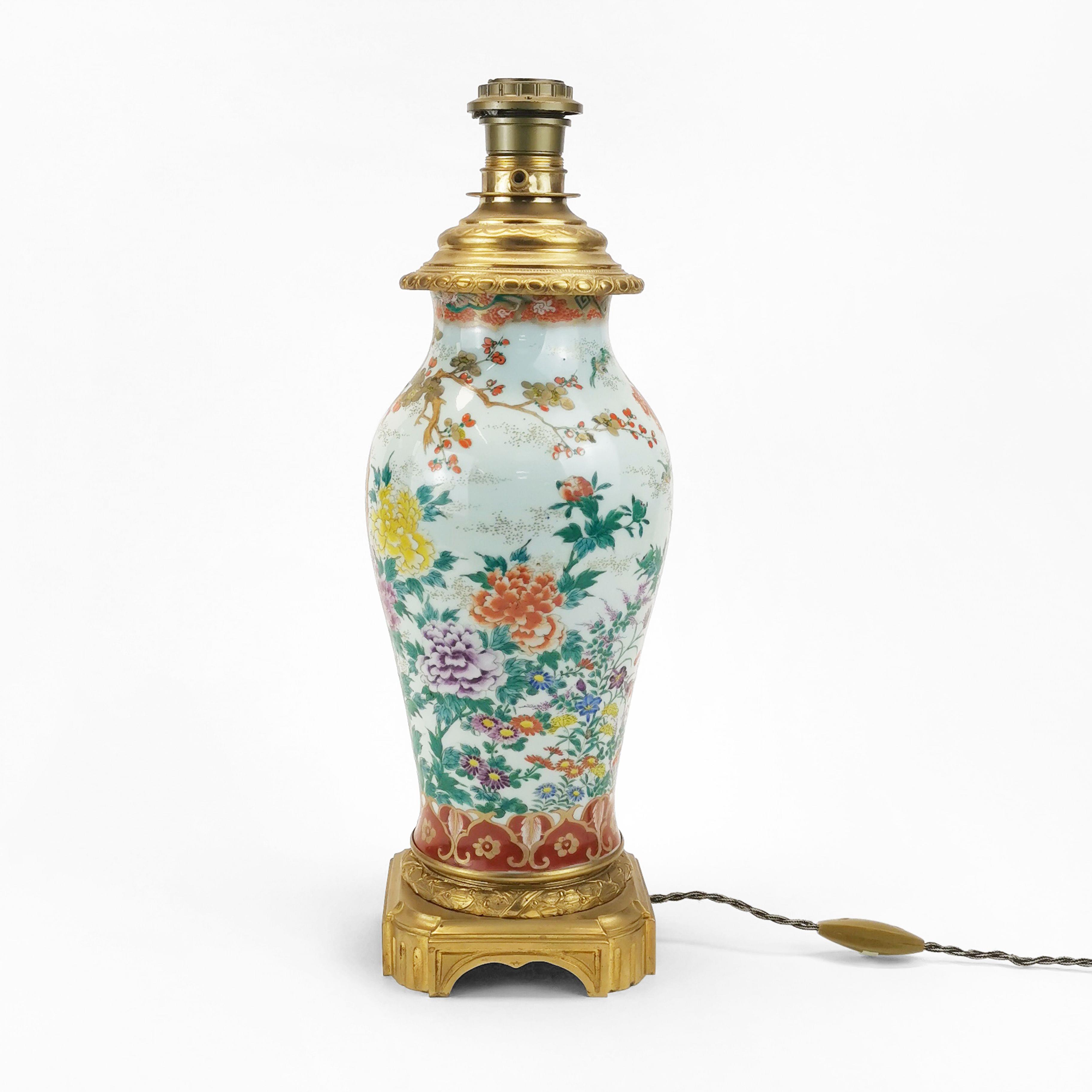 Porcelaine émaillée polychrome et bronze doré, H 40 cm