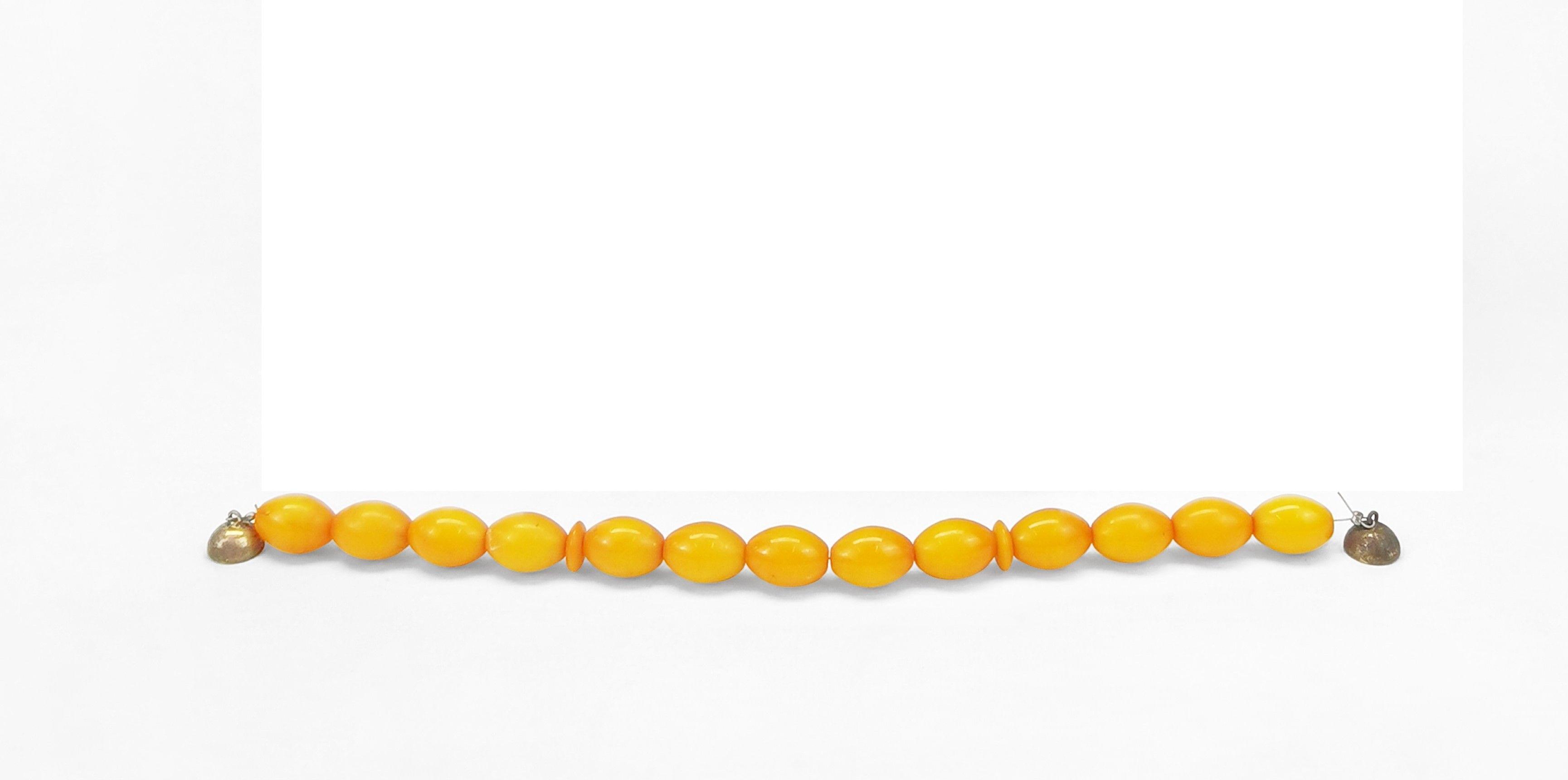 4742. Bracelet composé de perles d'ambre jaune et terminé par un fermoir aimanté