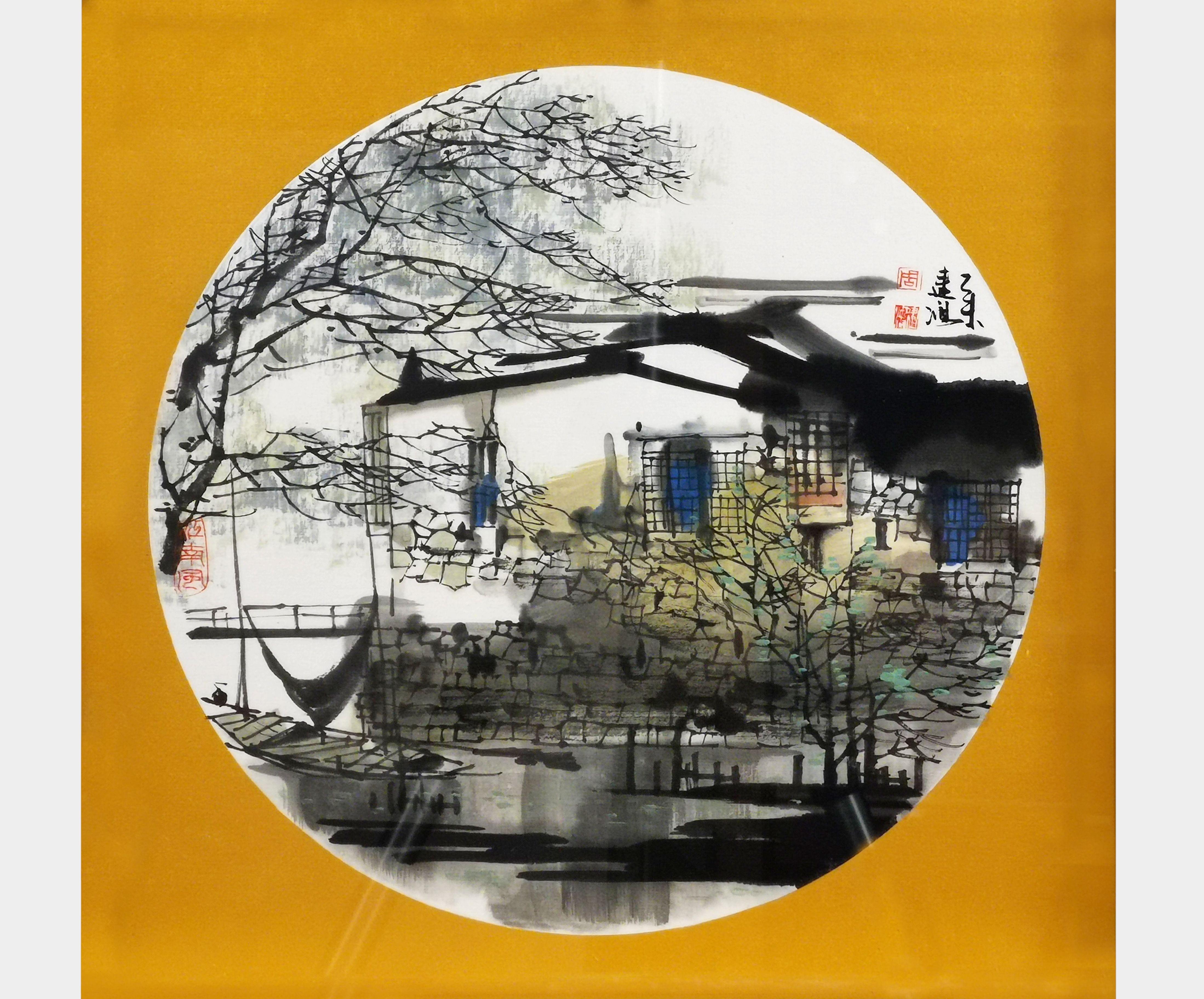 Paysage en tondo, encre sur papier, D 27 cm. Provenance: collection privée genevoise