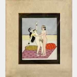 383. Tête-à-tête blanc et or à décor de scènes de tragédie en grisail...