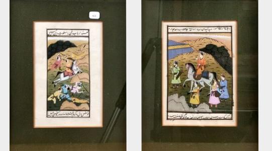 Paysages animés de personnages, gouaches et encres sur papier, 18x14 et 18x12