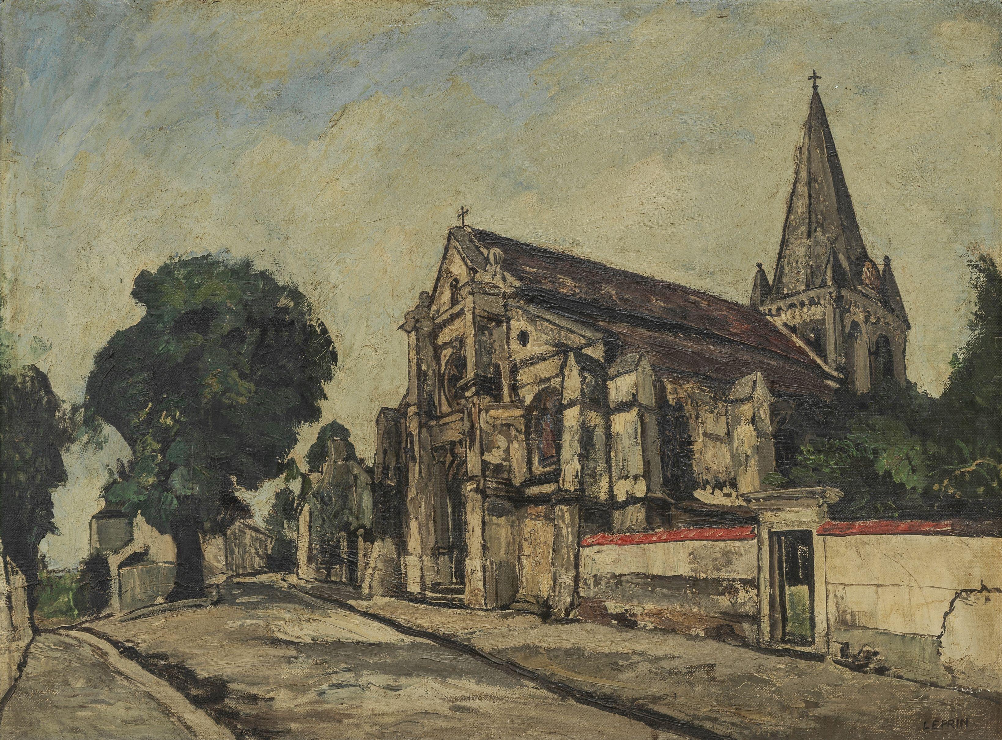 Eglise de Druyes Les Belles Fontaines, huile sur toile, signée,...