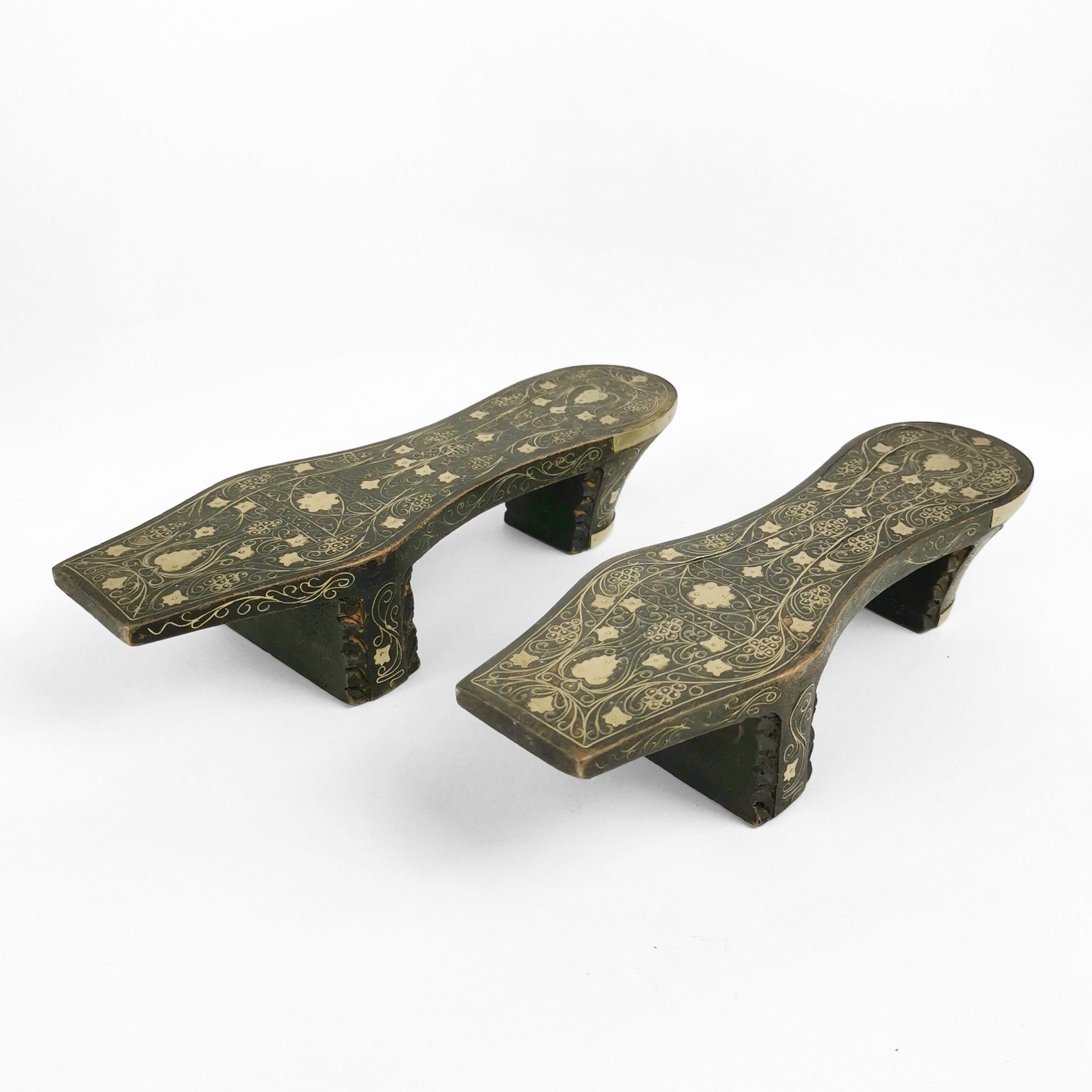 Brins en ivoire, à décor peint à la gouache de l'éruption du Vés...